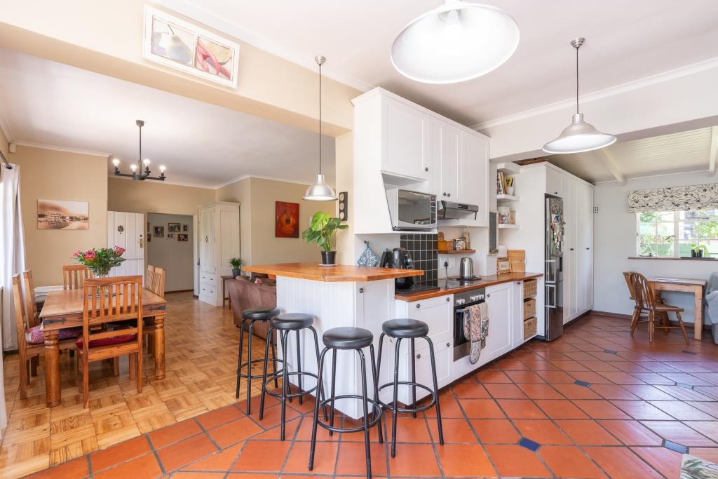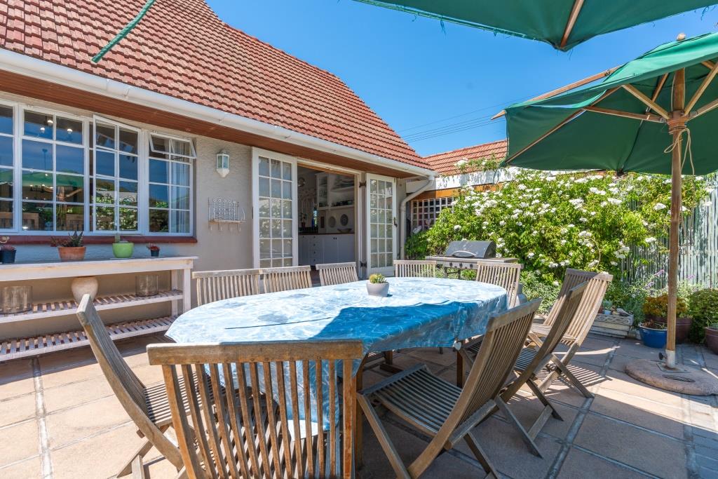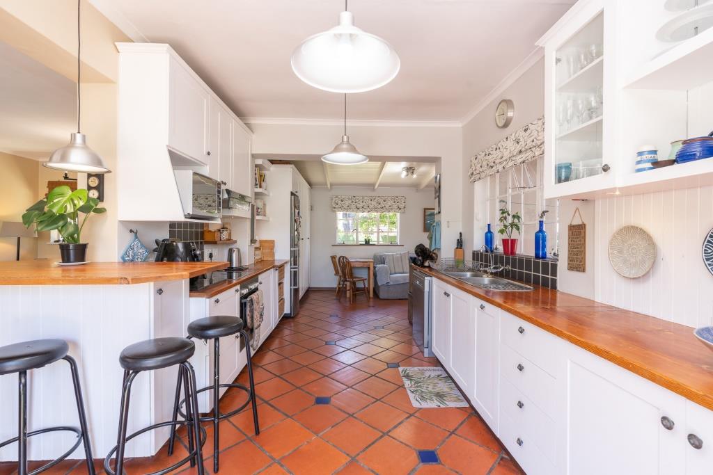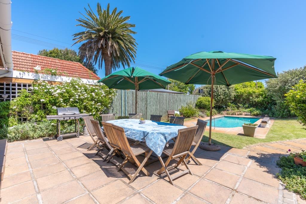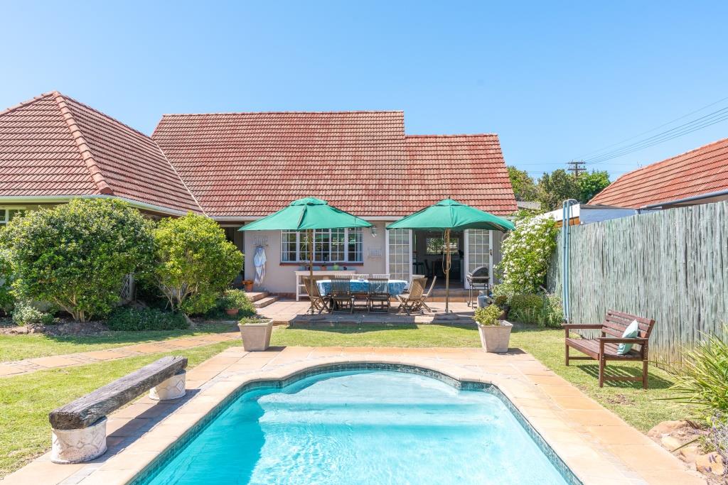 ***SOLD*** EXCLUSIVE LISTING An appealing family home like this doesn't come along very often. Set in a tranquil pocket of Bergvliet Dreyersdal, in a short tree-lined street, with convenient access to favourite local restaurants, shops and Sweet Valley School. First impression from the pavement is a "natural" one with its wooden slatted gates, flanked by pillars and lush hedges to create green privacy. There is an abundance of secure paved parking facilities behind automated gates with a triple shadeport, single garage and carport and separate access to an exterior bedsitter. Graced with all the charm of a late 1940's character home, this tastefully upgraded, much-loved home features gleaming wooden parquet floors, high ceilings, focal point fireplace, smooth interior walls, white cottage-pane windows and French doors, and a high-pitch tile roof offering upstairs potential, all embraced by a generous stretch of park-like garden for kids and pets to play. The garden is well-established with perimeter trees including plum and guava, well point, irrigation and a wide variety of bird-life. The delightful, sun-splashed, entertainment area focusses around the sparkling solar-heated, salt-chlorinated fibreglass pool and generous paved Patio, an inviting place for al fresco meals - used over the years for many special occasions with its fabulous flow through double French doors from the living area and kitchen. The warm glow of wooden floors greets you on entering the home, its North-facing aspect letting light and sunshine stream right in. The ambience of light in the open-plan lounge and dining room flows into the charming kitchen, bright with its white shaker doors and warm Oregon countertops and quarry tiles, the central heart of the home, enhanced by an inviting eating bar. Built-in appliances include glass hob, under counter oven, extractor and plumbing for dishwasher. An adjoining family room/TV room, with its white wooden ceilings is cleverly designed to be part of the living area and yet has a secluded, private feel. Convenient adjoining laundry connected to the exterior bedsitter with bedroom/living area and shower bathroom - ideal for a teenager / guest room / home office. The substantial bedroom wing consists of 4 bedrooms, all with built-in cupboards. The main suite is North-facing and benefits from a luxurious full en-suite bathroom with solar geyser. There are 3 other bedrooms and a full family bathroom plus guest loo. Security features include perimeter fencing, burglar bars and alarm system. The area benefits from security cameras linked to the local neighbourhood watch control room. A rare opportunity! Viewing exclusively by appointment. Erf size: 1,115 sqm House size: 270 sqm (approx) Rates: R 1,860 pm (approx)