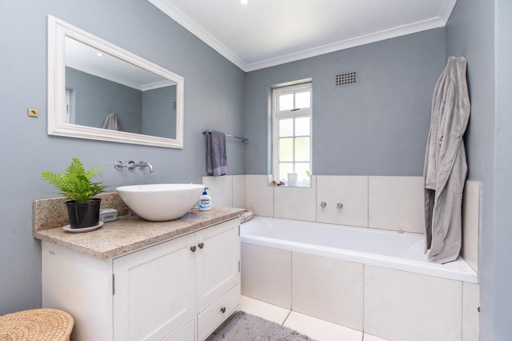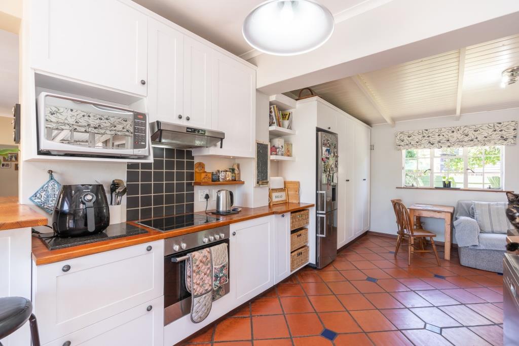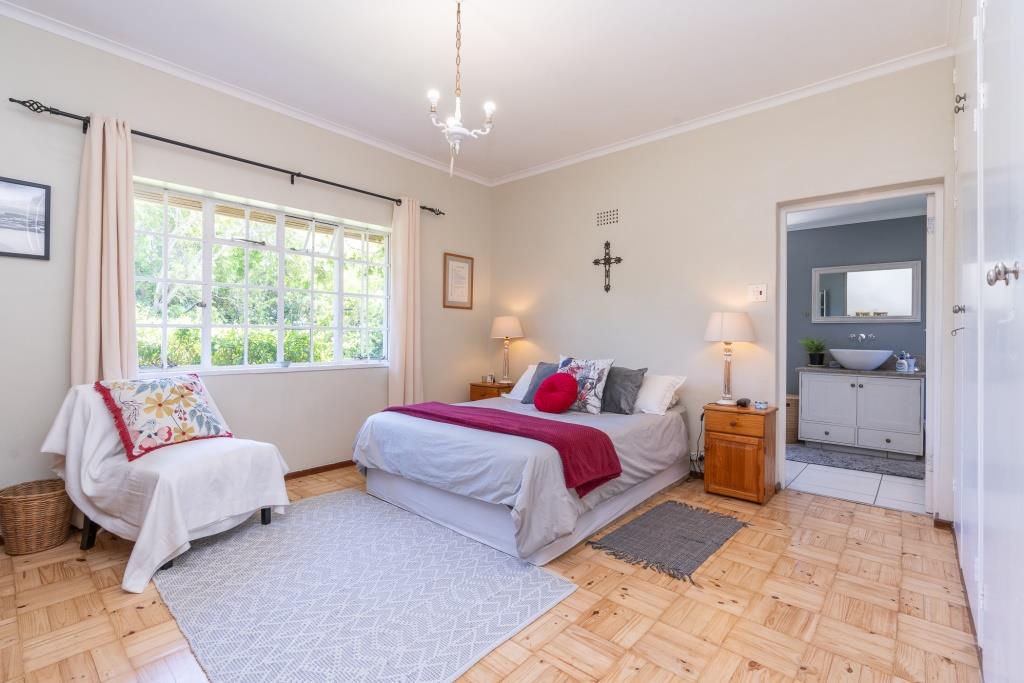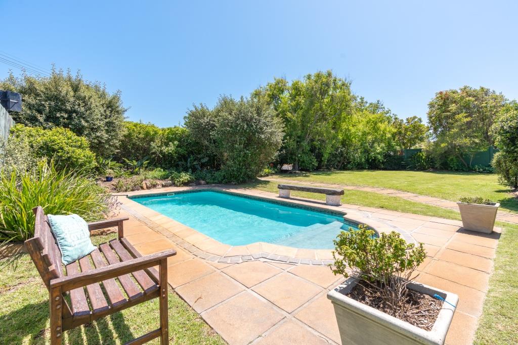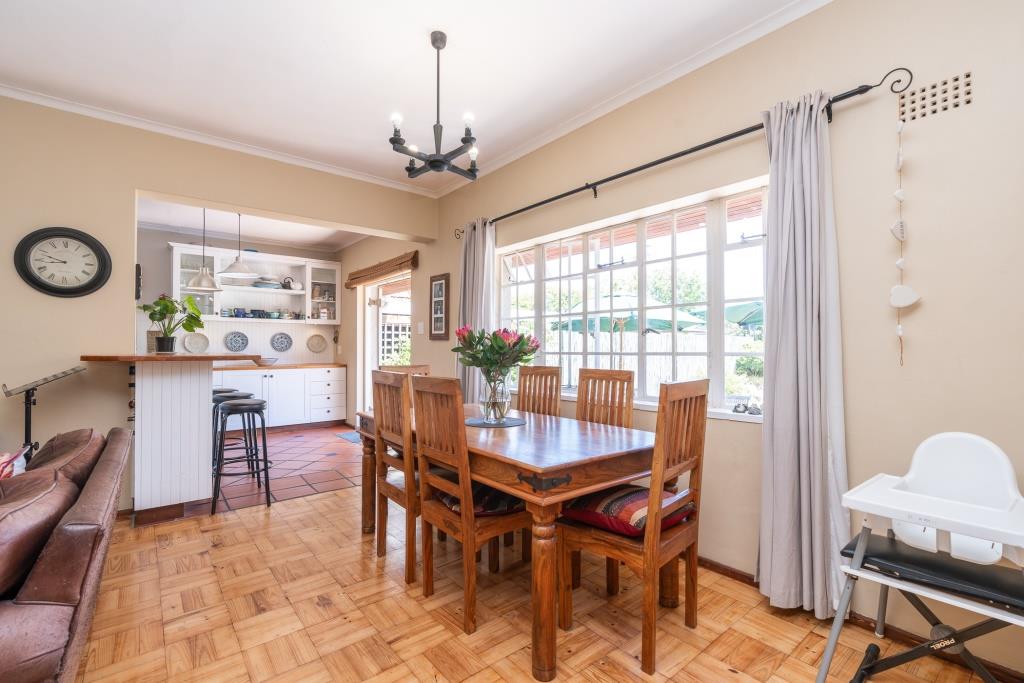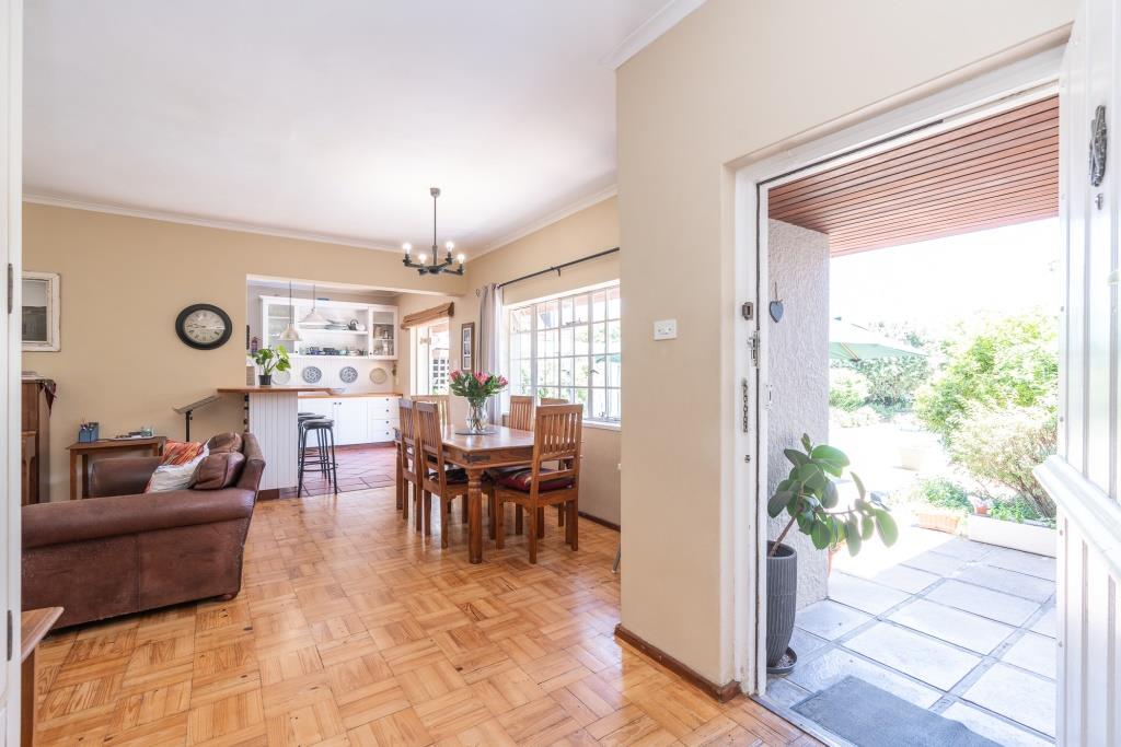 ***SOLD*** EXCLUSIVE LISTING An appealing family home like this doesn't come along very often. Set in a tranquil pocket of Bergvliet Dreyersdal, in a short tree-lined street, with convenient access to favourite local restaurants, shops and Sweet Valley School. First impression from the pavement is a "natural" one with its wooden slatted gates, flanked by pillars and lush hedges to create green privacy. There is an abundance of secure paved parking facilities behind automated gates with a triple shadeport, single garage and carport and separate access to an exterior bedsitter. Graced with all the charm of a late 1940's character home, this tastefully upgraded, much-loved home features gleaming wooden parquet floors, high ceilings, focal point fireplace, smooth interior walls, white cottage-pane windows and French doors, and a high-pitch tile roof offering upstairs potential, all embraced by a generous stretch of park-like garden for kids and pets to play. The garden is well-established with perimeter trees including plum and guava, well point, irrigation and a wide variety of bird-life. The delightful, sun-splashed, entertainment area focusses around the sparkling solar-heated, salt-chlorinated fibreglass pool and generous paved Patio, an inviting place for al fresco meals - used over the years for many special occasions with its fabulous flow through double French doors from the living area and kitchen. The warm glow of wooden floors greets you on entering the home, its North-facing aspect letting light and sunshine stream right in. The ambience of light in the open-plan lounge and dining room flows into the charming kitchen, bright with its white shaker doors and warm Oregon countertops and quarry tiles, the central heart of the home, enhanced by an inviting eating bar. Built-in appliances include glass hob, under counter oven, extractor and plumbing for dishwasher. An adjoining family room/TV room, with its white wooden ceilings is cleverly designed to be part of the living area and yet has a secluded, private feel. Convenient adjoining laundry connected to the exterior bedsitter with bedroom/living area and shower bathroom - ideal for a teenager / guest room / home office. The substantial bedroom wing consists of 4 bedrooms, all with built-in cupboards. The main suite is North-facing and benefits from a luxurious full en-suite bathroom with solar geyser. There are 3 other bedrooms and a full family bathroom plus guest loo. Security features include perimeter fencing, burglar bars and alarm system. The area benefits from security cameras linked to the local neighbourhood watch control room. A rare opportunity! Viewing exclusively by appointment. Erf size: 1,115 sqm House size: 270 sqm (approx) Rates: R 1,860 pm (approx)