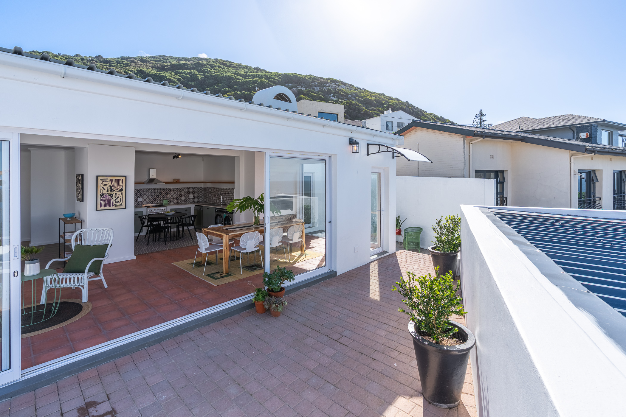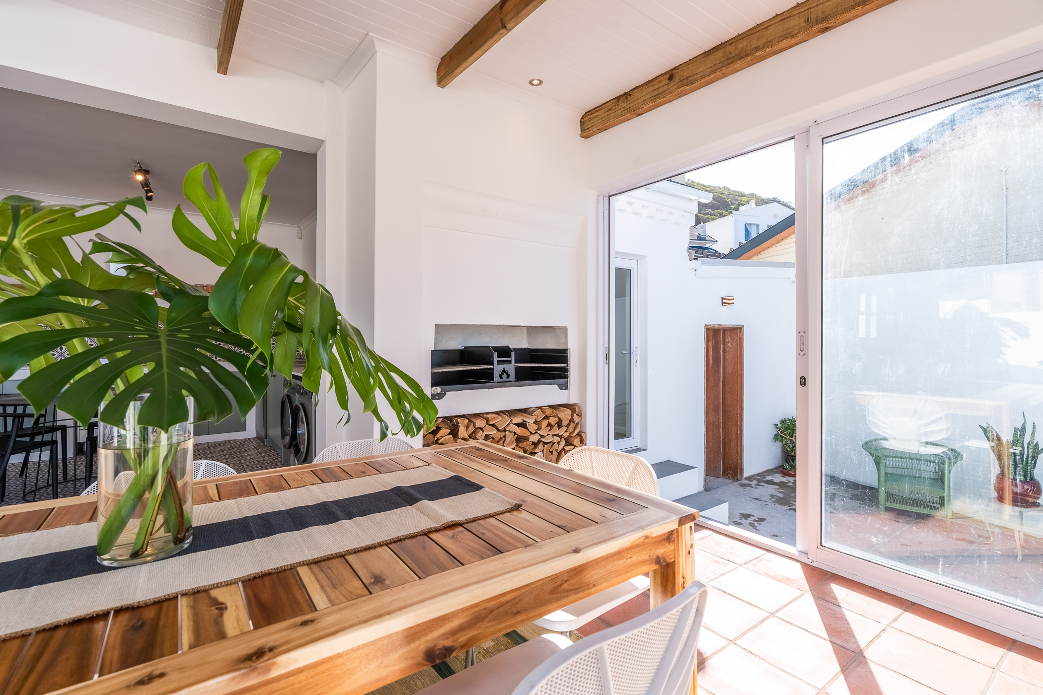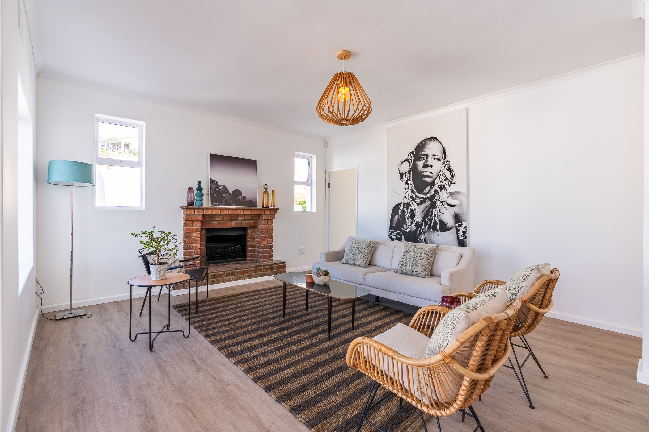 Illuminate Real Estate is proud to present this gorgeous seaside residence, perched on a corner site in Cairnside looking towards Roman Rock Lighthouse and Simon’s Town. Set back far enough from the main road that you don’t hear any traffic, but close enough that you can walk down to the water, Dixies, or Harbour Bay Shopping Centre. The home welcomes natural light from any angle through beautiful, large windows and doors. The living room is open plan, spacious, and flows to two patios/courtyards offering options for outdoor entertaining. The lounge has a wood-burning fireplace, while the sunroom doubles up a braai room with a sea view.
