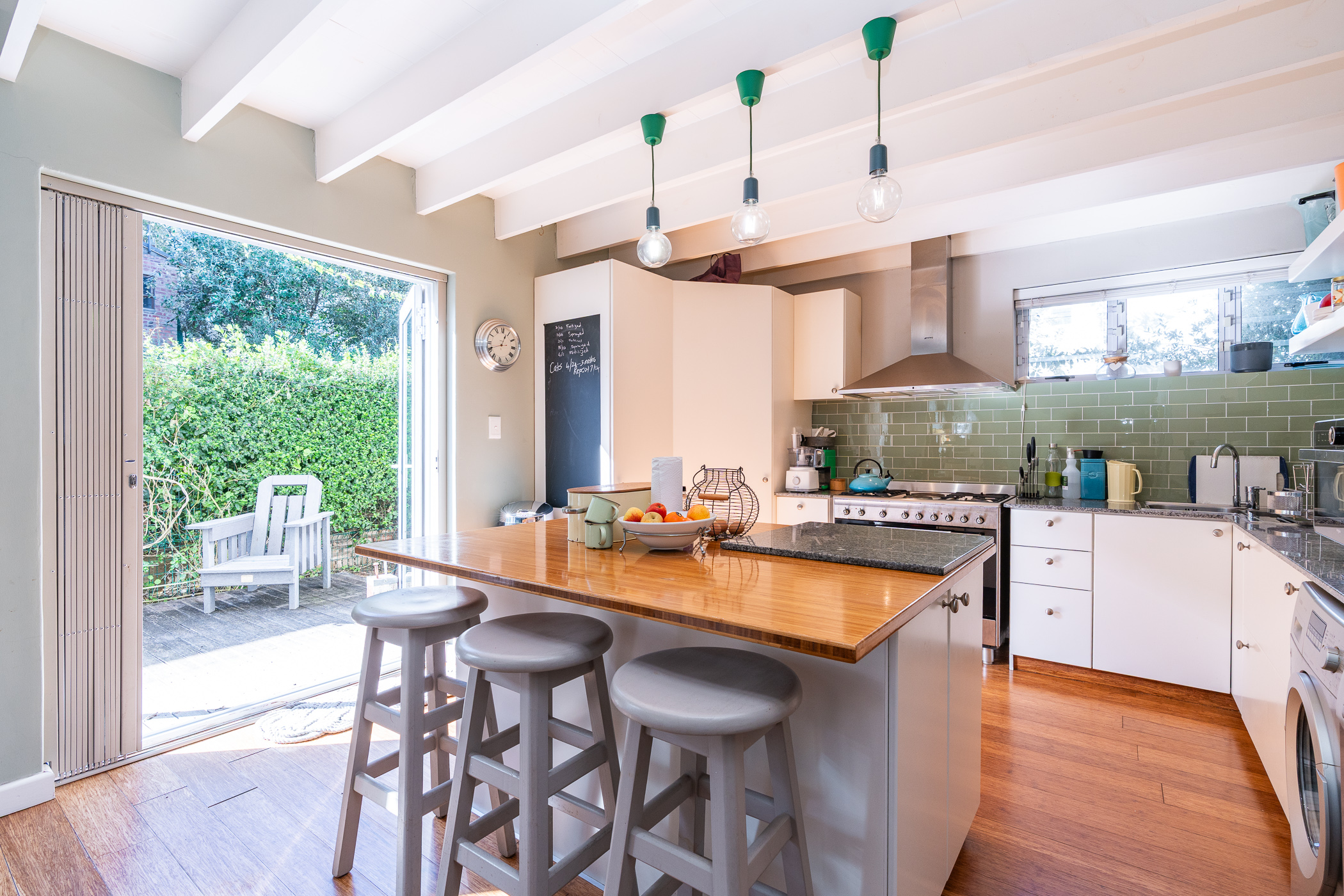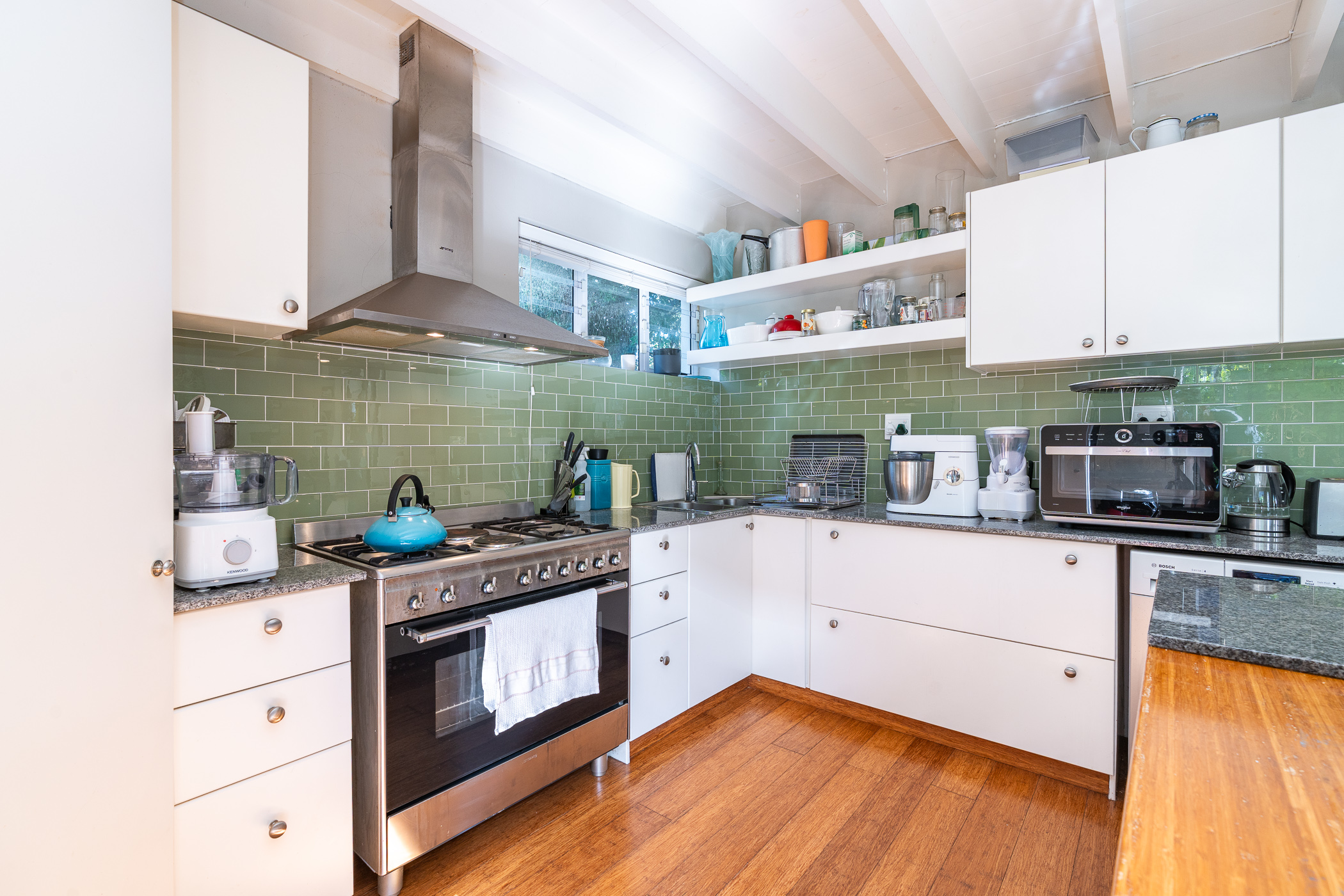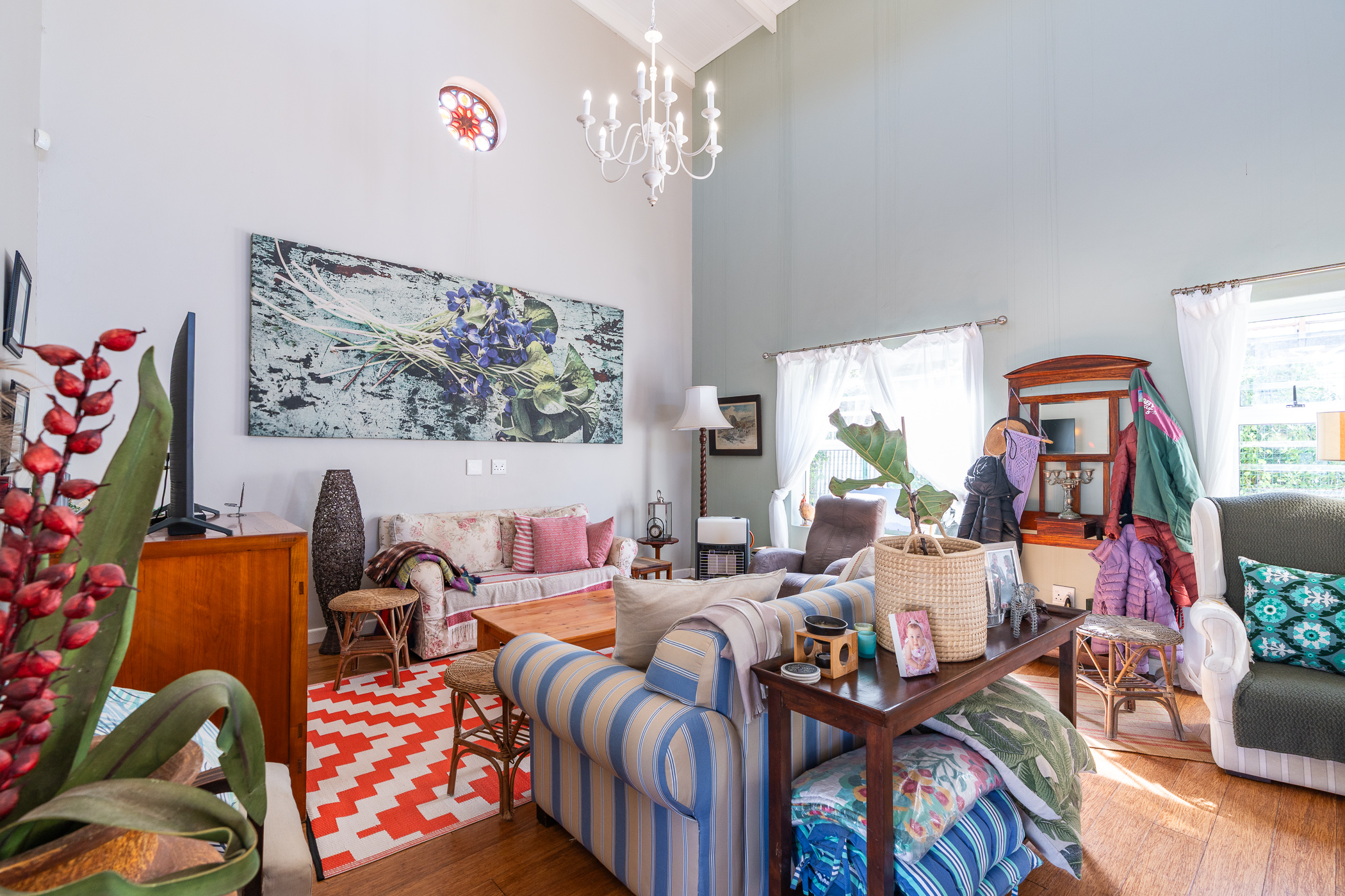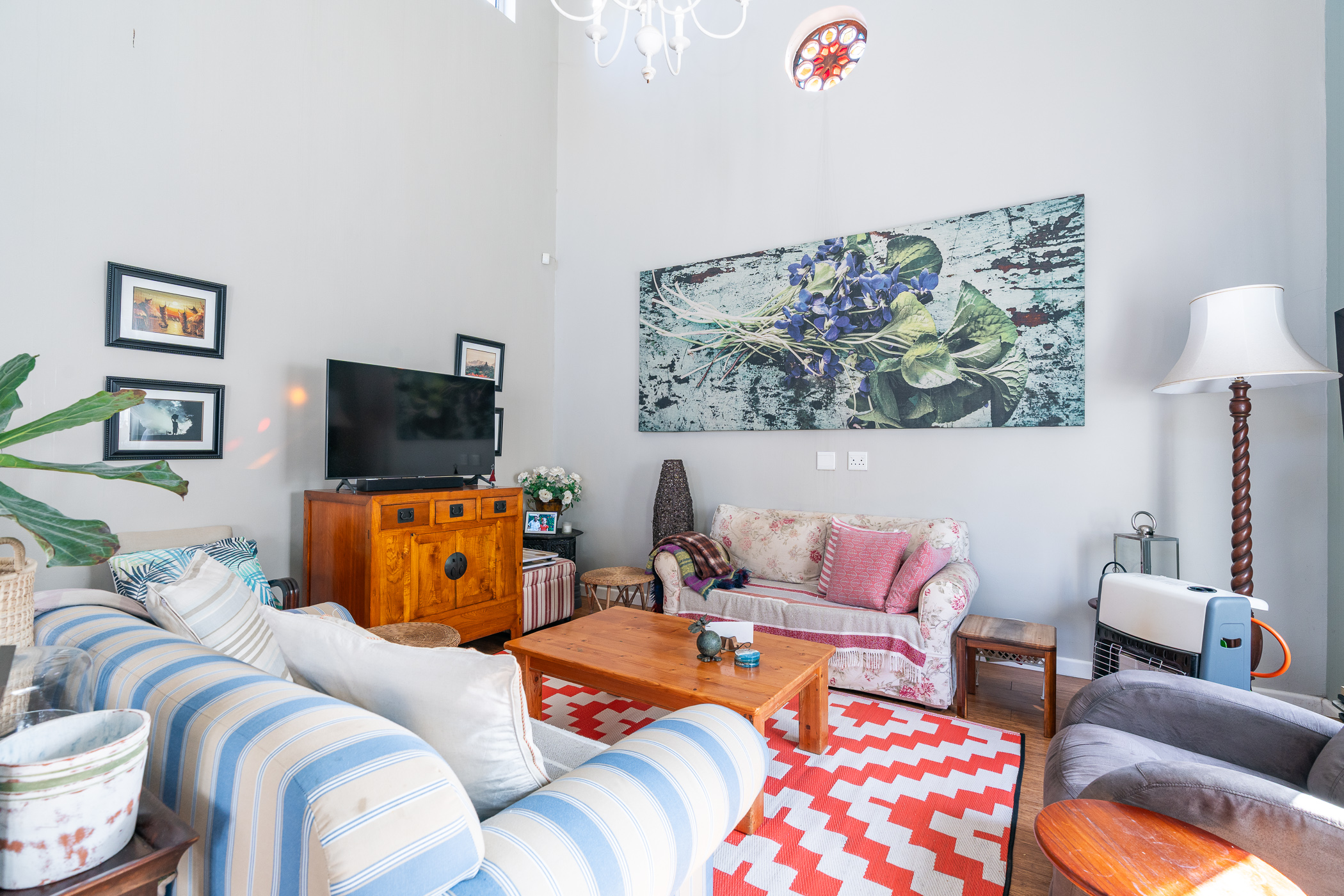 Both bedrooms are ensuite and are located on the ground floor, either side of the braai room – perfect for offering guests privacy. The main bedroom is particularly spacious and includes a full wall of built-in cupboards. Both bedrooms have French doors to the front patio/garden. A mezzanine level above the kitchen serves as a guest room/study. The home has aluminium windows and doors all round, and a solar geyser is fitted enabling huge power savings. A truly, move-in-ready, low maintenance home in one of Cape Town’s most desirable secret suburbs.