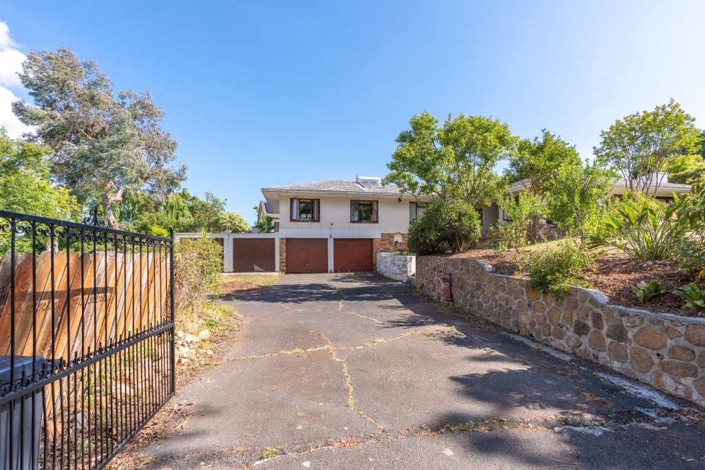 ***SOLD*** EXCLUSIVE LISTING You need to see this property in person to experience its superb location - this elevated home sits on a sunny, quiet, 1469 sqm stand with larger than average North/North-East aspect garden as the road bends past a beautiful greenbelt (opposite) with landscaped education circle. Built upon the very highest, southern boundary of the property, the home offers truly maximized enjoyment of the spacious grounds. A large driveway leads up to the house with 4 garages. Built in the 70s, running East to West with all 4 bedrooms facing North, and the living areas leading out to the front garden. The kitchen, while dated, is incredibly spacious. There is a working, ironcast fireplace in the lounge (currently a guest suite). There are several fruit trees throughout the garden and water tanks to collect rain water. Offering an incredibly amount of potential to create a truly sensational residence. Viewing by appointment only. Erf size: 1469 sqm House size approx. 285 sqm Rates approx. R2025 pm