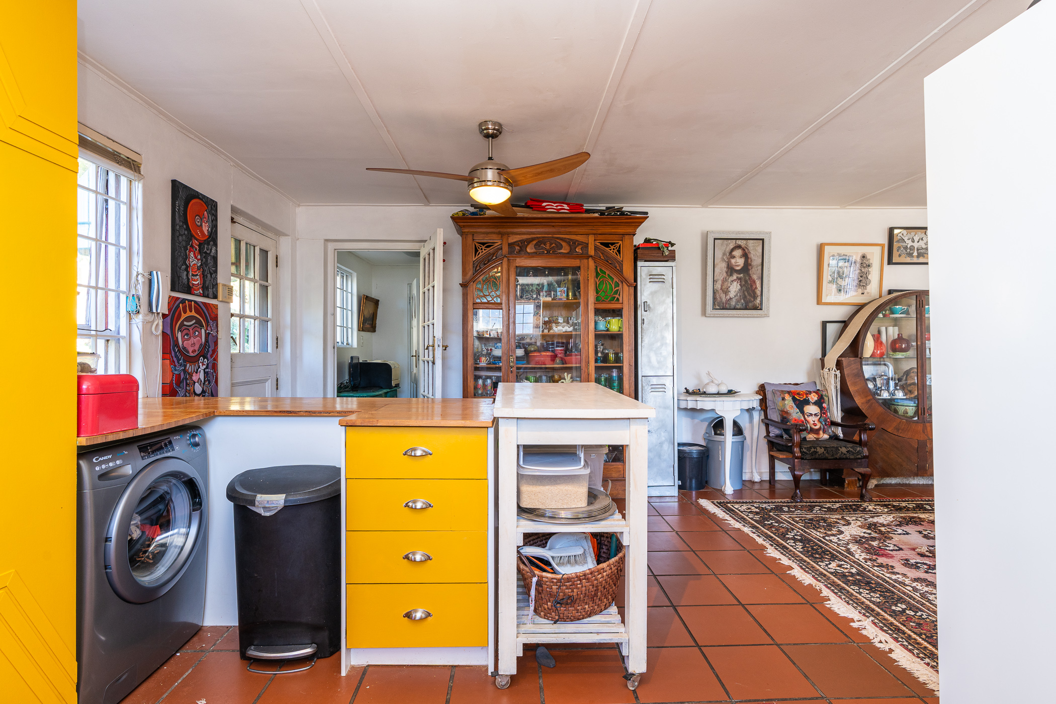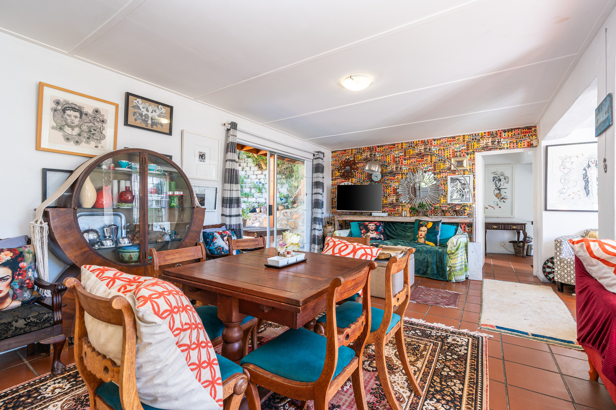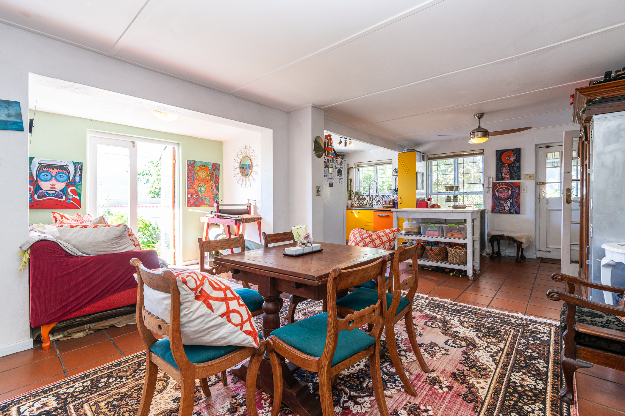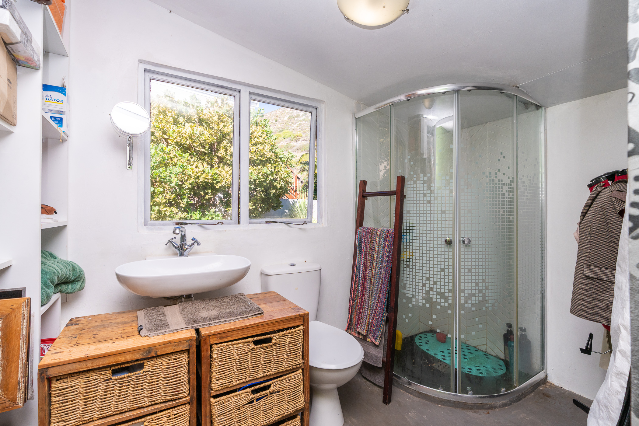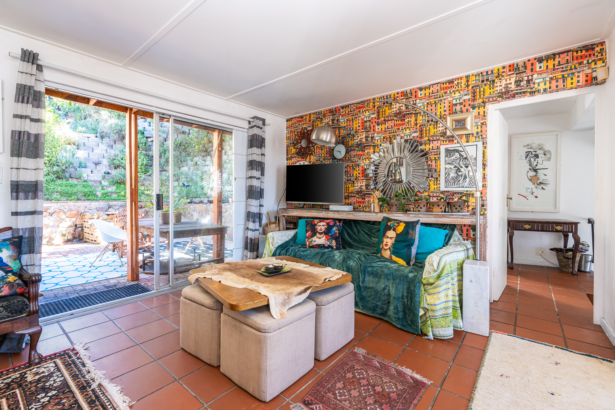 Set high on the mountain side of Fish Hoek, this charming rustic home will captivate you. Enter to the front door through the pretty rockery style garden. The colorful open plan kitchen is on your left side, with a gas hob, has tiled floors, plumbed for 2 appliances, and boasts a cozy breakfast bar. To your right is the sunny lounge with mountain views and dining area, doors lead out to the patio and garden with outdoor braai and storeroom. Continuing from the lounge further to the right is a generous bedroom, with a large shower in the en-suite, built in cupboards, and carpeted floor. This could easily be set up as a little teen pad / granny flat.