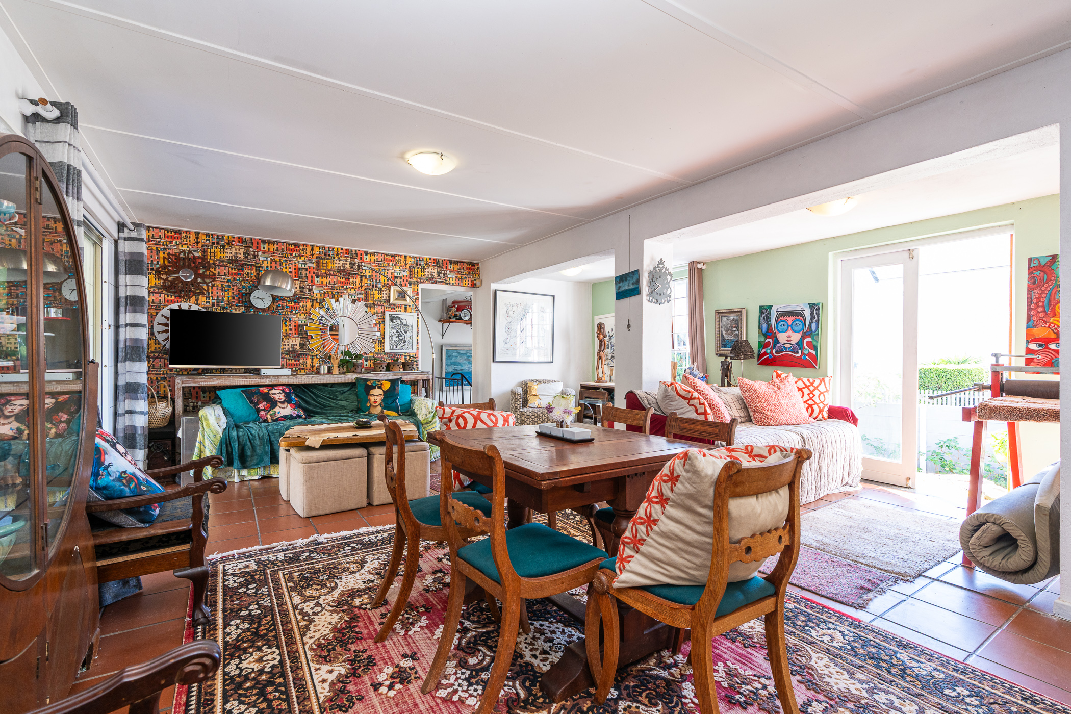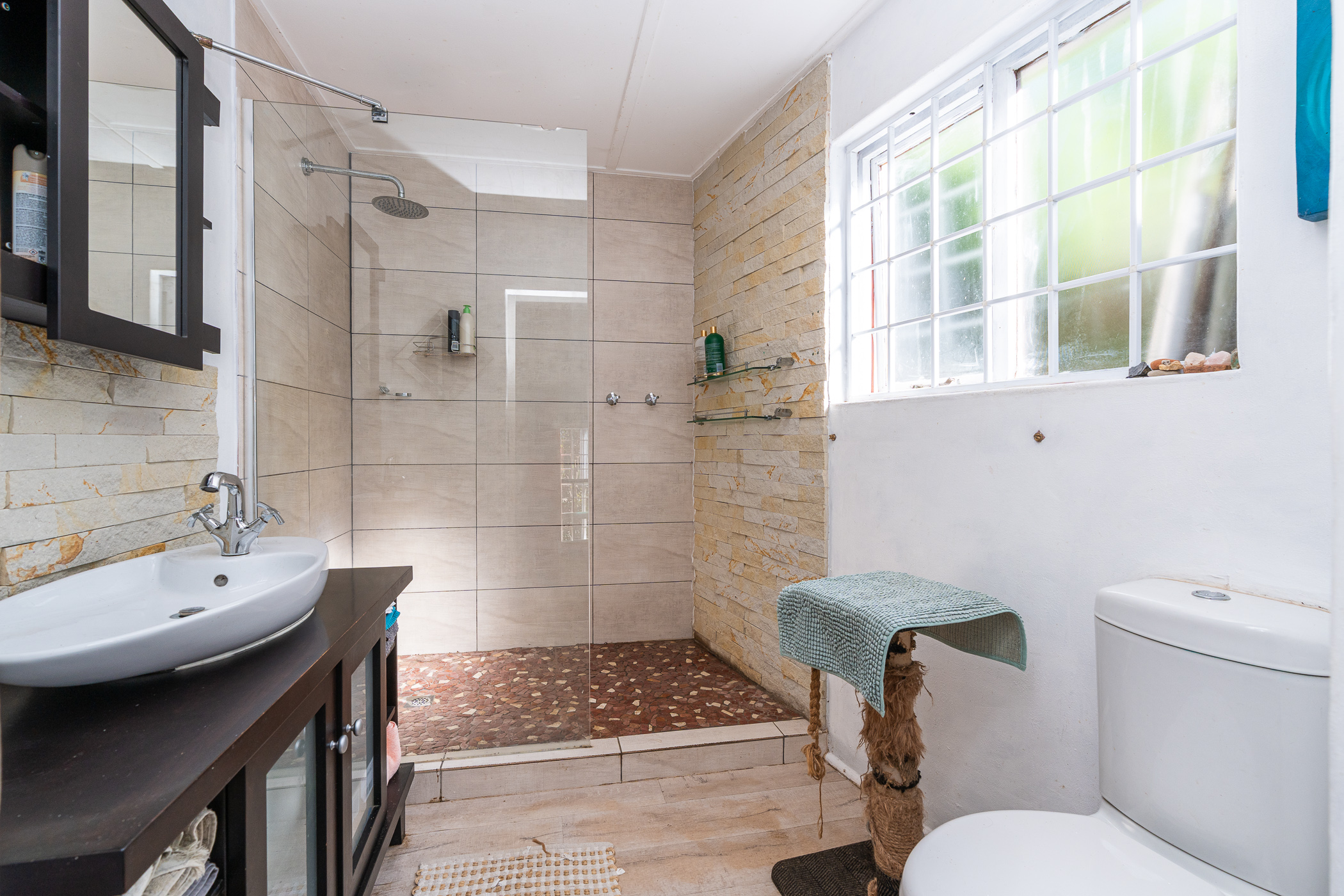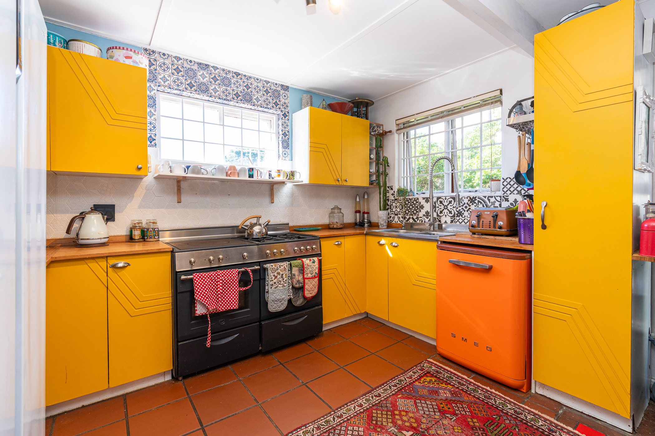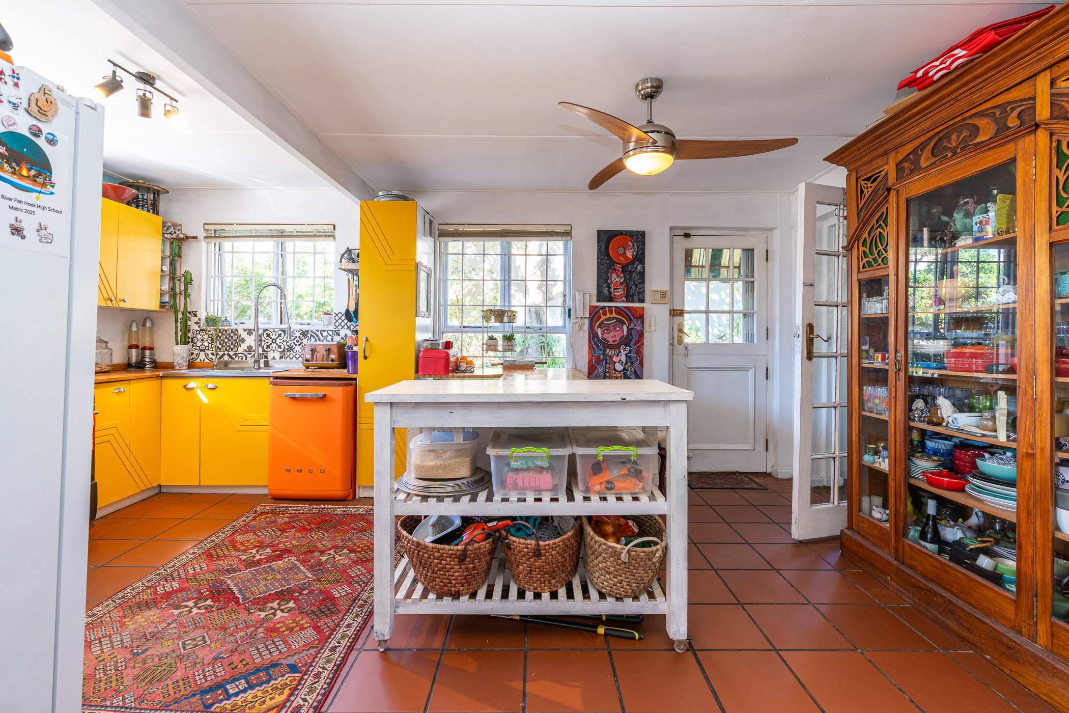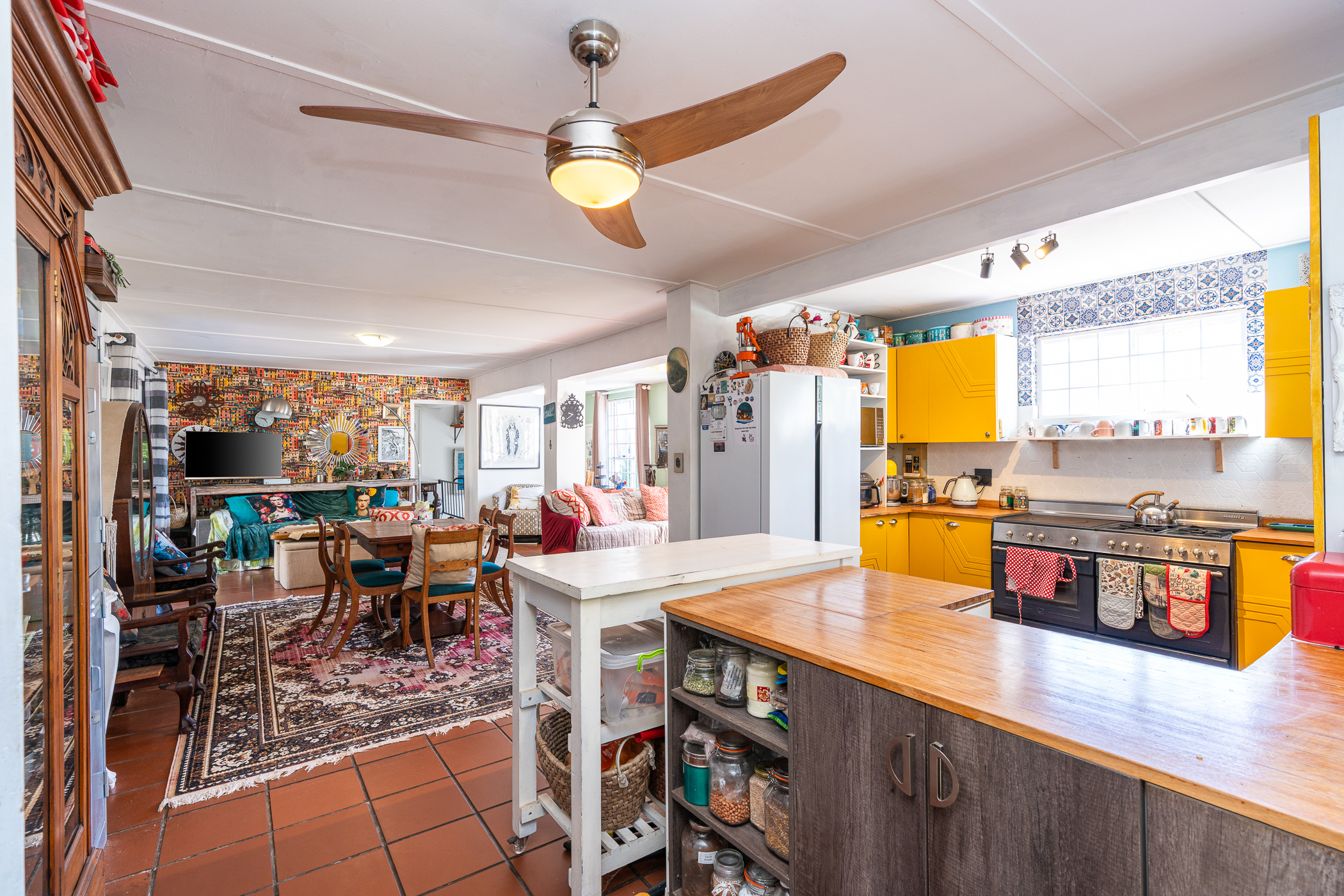 Set high on the mountain side of Fish Hoek, this charming rustic home will captivate you. Enter to the front door through the pretty rockery style garden. The colorful open plan kitchen is on your left side, with a gas hob, has tiled floors, plumbed for 2 appliances, and boasts a cozy breakfast bar. To your right is the sunny lounge with mountain views and dining area, doors lead out to the patio and garden with outdoor braai and storeroom. Continuing from the lounge further to the right is a generous bedroom, with a large shower in the en-suite, built in cupboards, and carpeted floor. This could easily be set up as a little teen pad / granny flat.