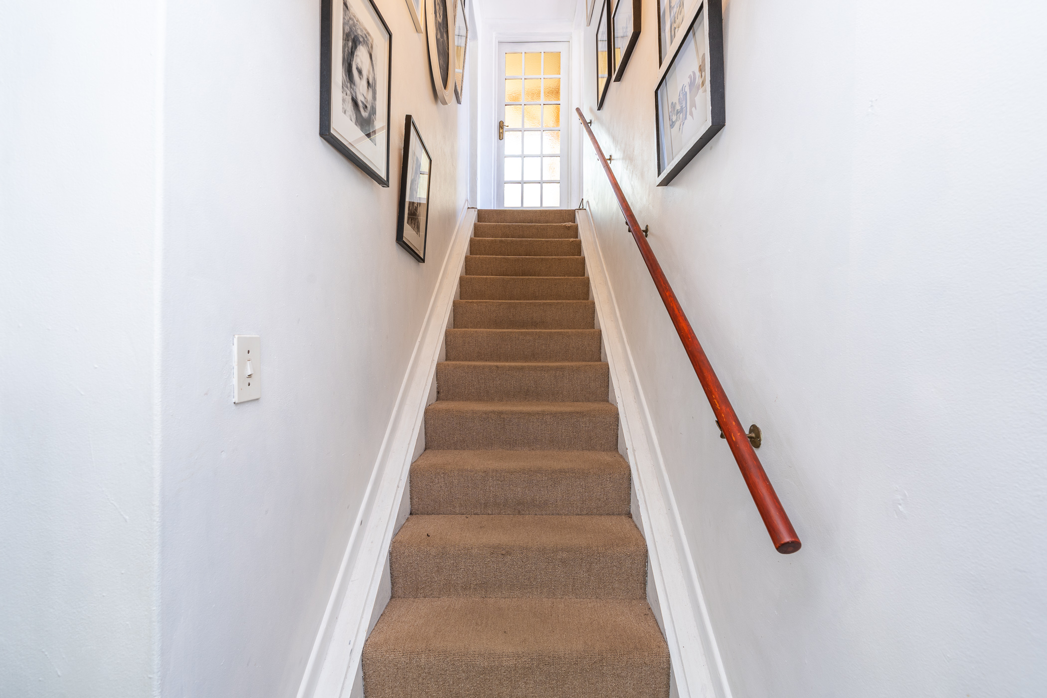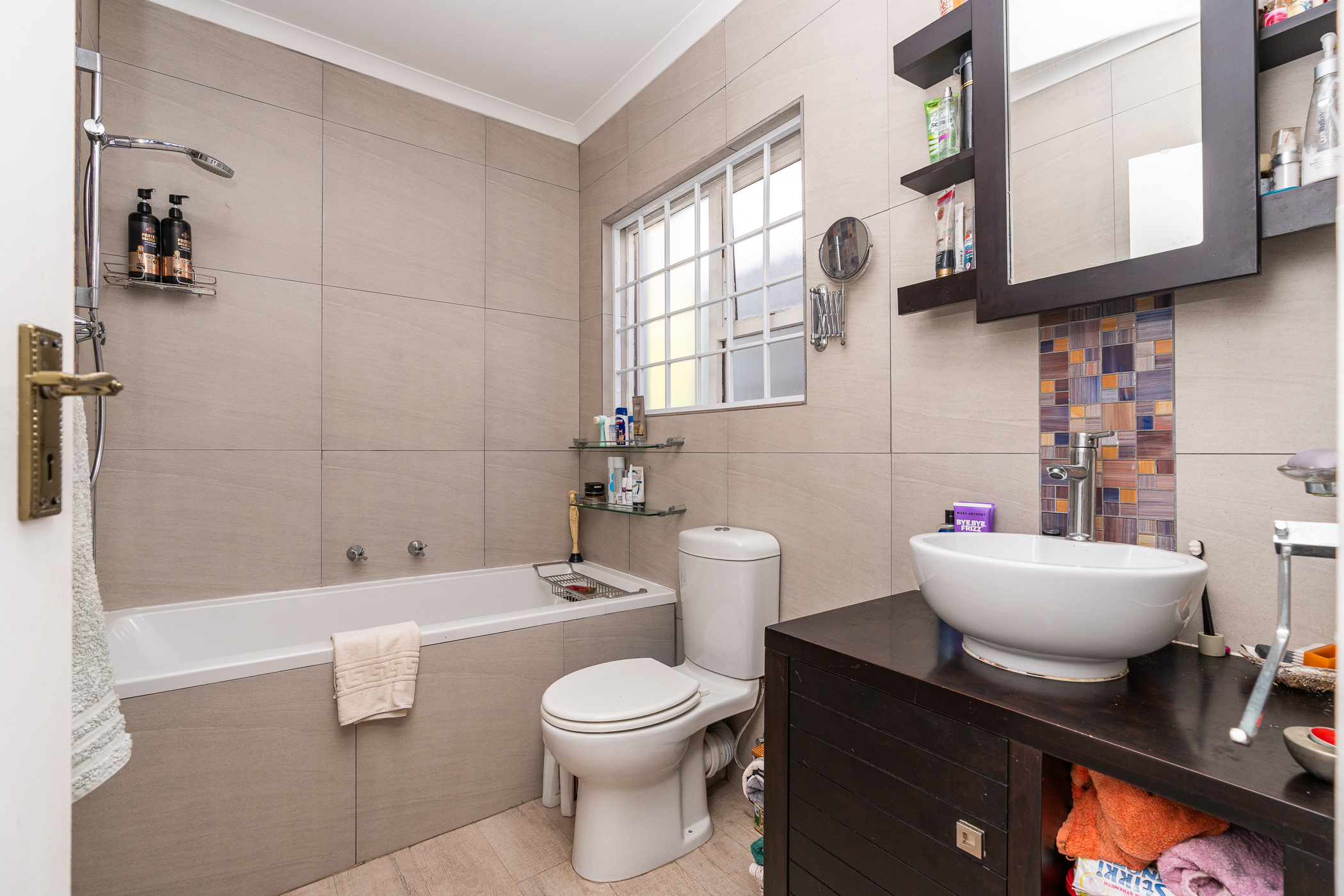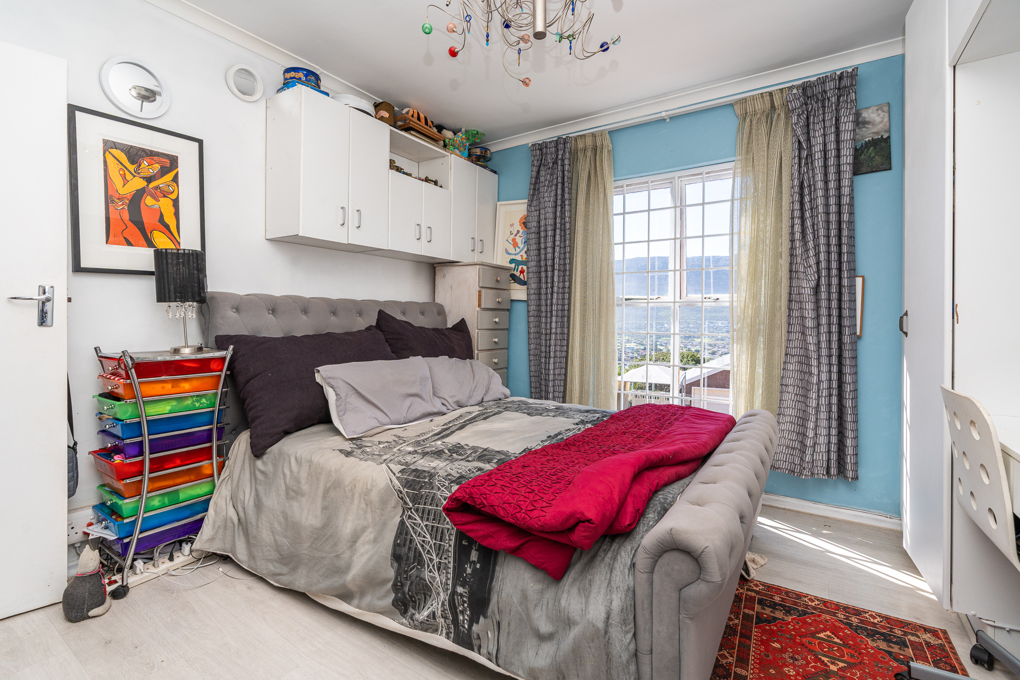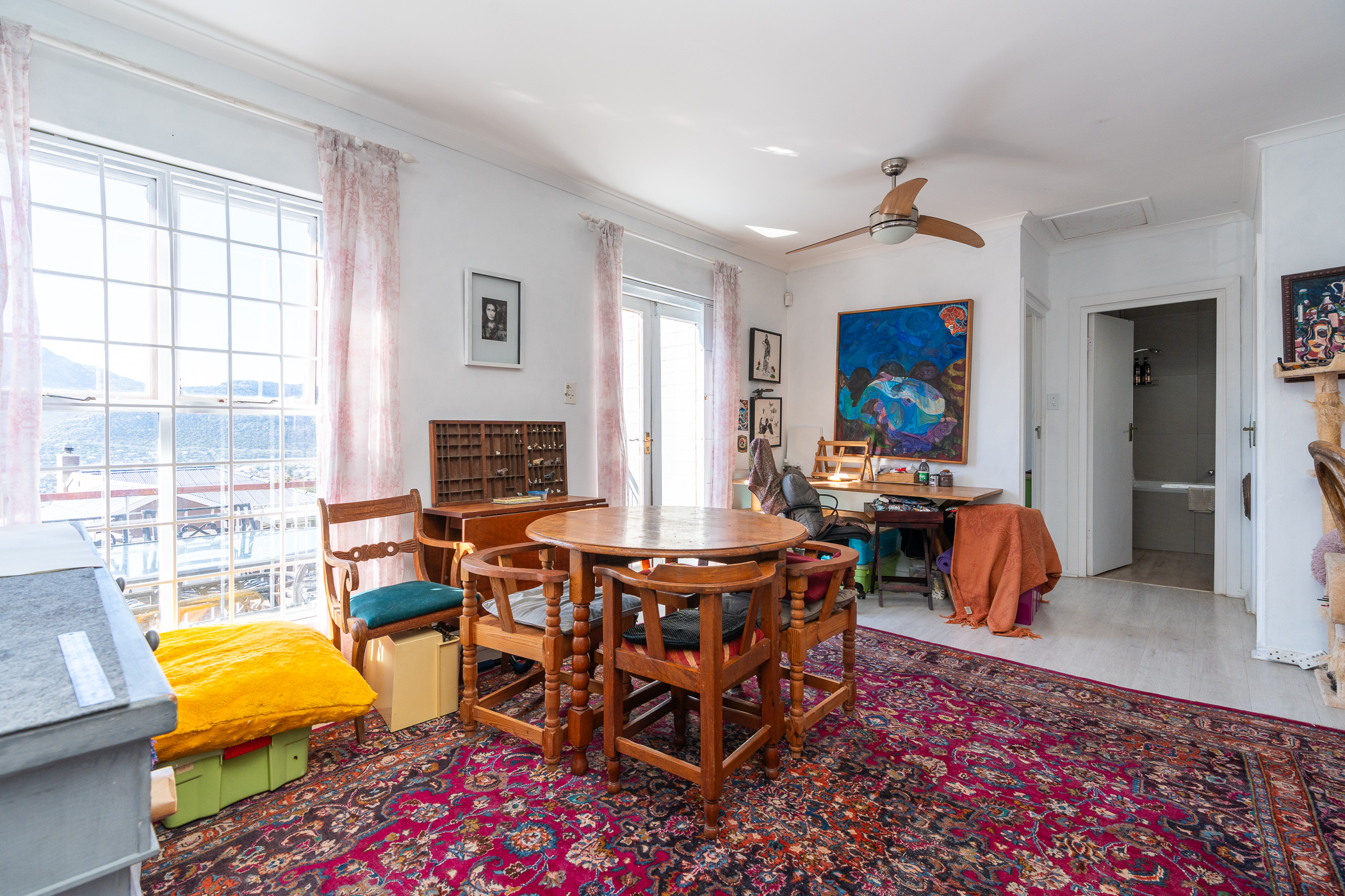 Through a door in the kitchen, we are taken to a work-from-home/office and guest toilet. Carpeted stairs lead up to a further family room/lounge/work area/pajama lounge plus 3 further bedrooms, with built in cupboards, one en-suite with a shower, and a family bathroom with a bathtub.  Doors from the lounge area open to two balconies - one offering sheltered tranquil views of indigenous back garden, and the second (front balcony) gorgeous views across the beautiful Fish Hoek valley. There are views from nearly every corner of this home!