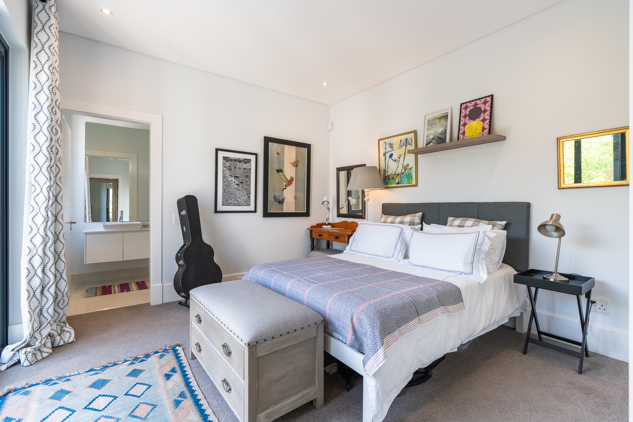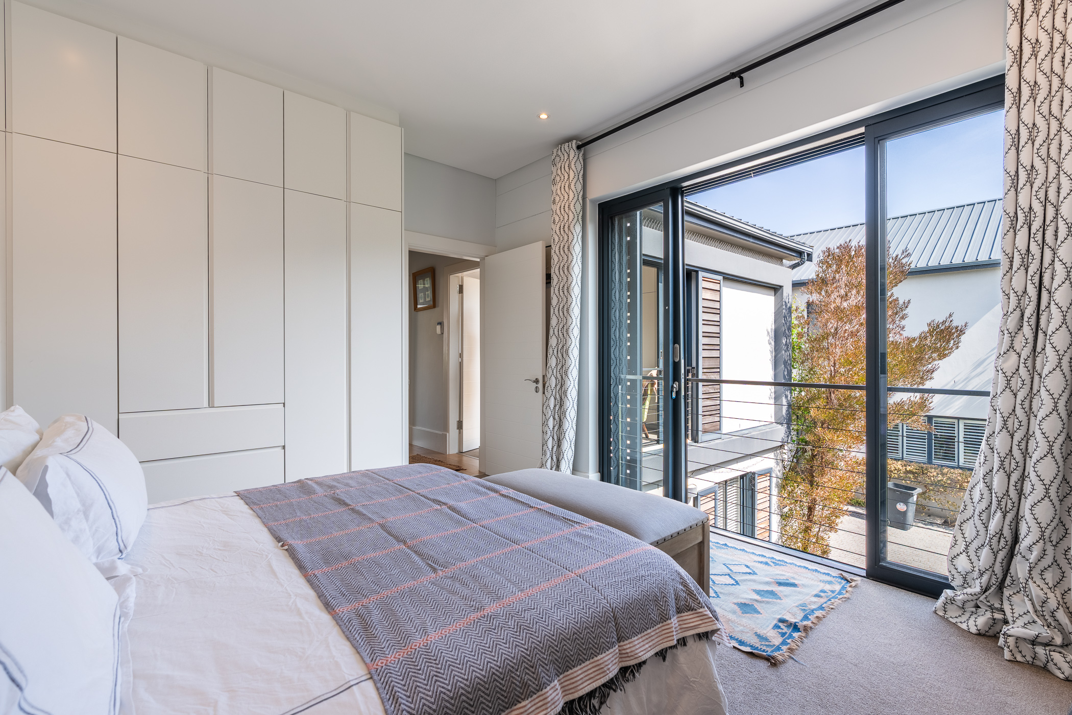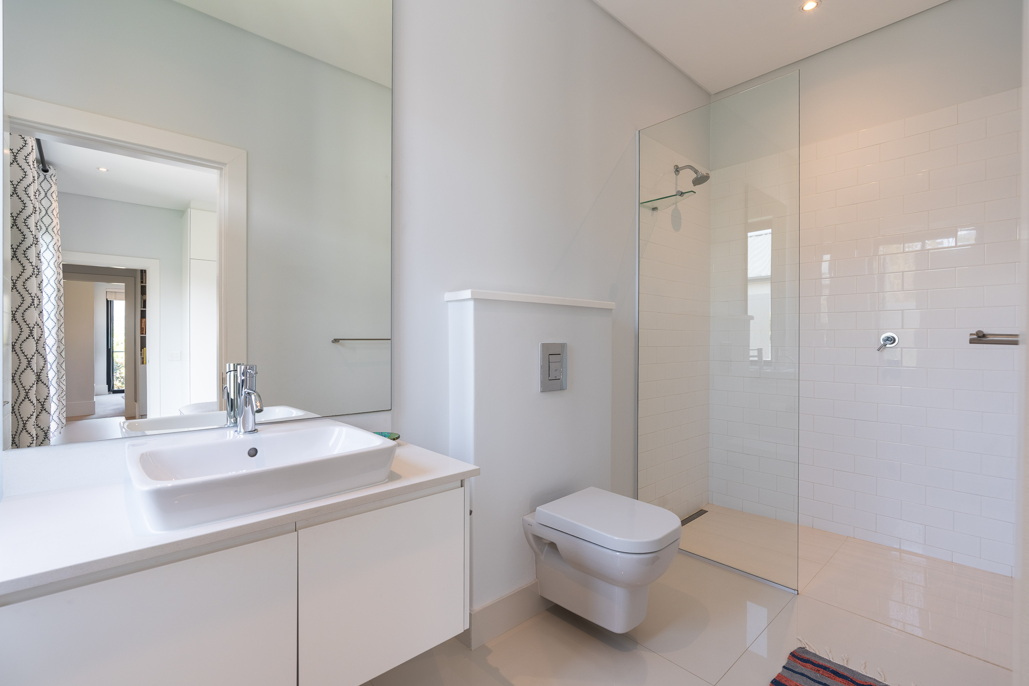 A generously wide staircase leads to three spacious light and bright bedrooms, all en-suite, all carpeted with built in cupboards, the main bedroom has a double vanity with a shower and bath plus stunning mountain views.