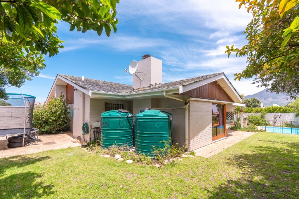 *** SOLD *** EXCLUSIVE LISTING This is your chance to get into Kreupelbosch! Not only is this the only home currently available amongst only 200 properties nestled on the sun-kissed hill between Ladies Mile and the M3, it is also in a superb location! Fuller Road is one of the sweet spots which is walking distance (500m) from Sweet Valley Primary's main entrance, and just far away enough from the surrounding roads to escape any traffic noise. Offering a truly unique, statement 70s facade with original airbricks to one side, and direct acces on the other into an open plan, North-North-West facing living area. The kitchen has been beautifully modernized offering tons of work space and storage, complete with SMEG 900mm cooker, space for a double door fridge, and a walk-in pantry/laundry. The lounge has a fireplace and huge windows on two sides facing the mountain. The dining room leads out to an undercover patio that in turn blends into a lawned garden with established trees along the boundary, The swimming pool is fenced off, in a good condition, and nicely situated in the upper north-west corner of the property. A borehole, tank and irrigation system keeps things green and the pool topped up. The bedrooms comprise of one large bedroom with ensuite and a pedestrian door to a courtyard on the street side of the living areas, making it a perfect home office or playroom; and three bedrooms with two bathrooms on the opposite side of the living room along the bedroom wing. Two of the three bedrooms have direct access to the garden, while all three have built in cupboards. The main bedroom is ensuite and enjoys an aircon. Extras include a garden shed, low maintenance fynbos garden to the west, wood storage, and small storeroom. This is a golden opportunity for families and investors alike. Viewing by appointment only. House size approx. 275 sqm Erf size 800 sqm Rates approx. R1805 pm