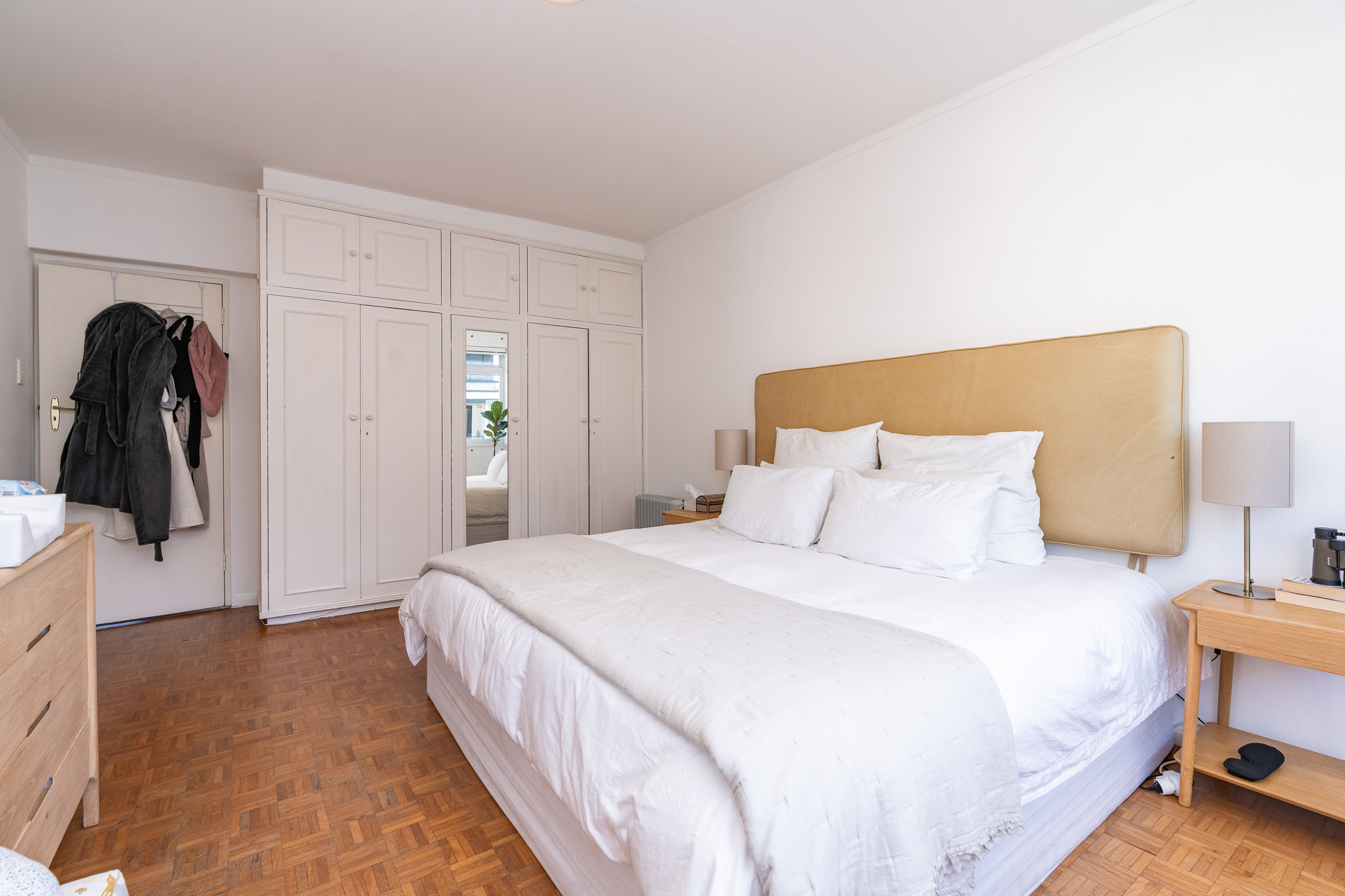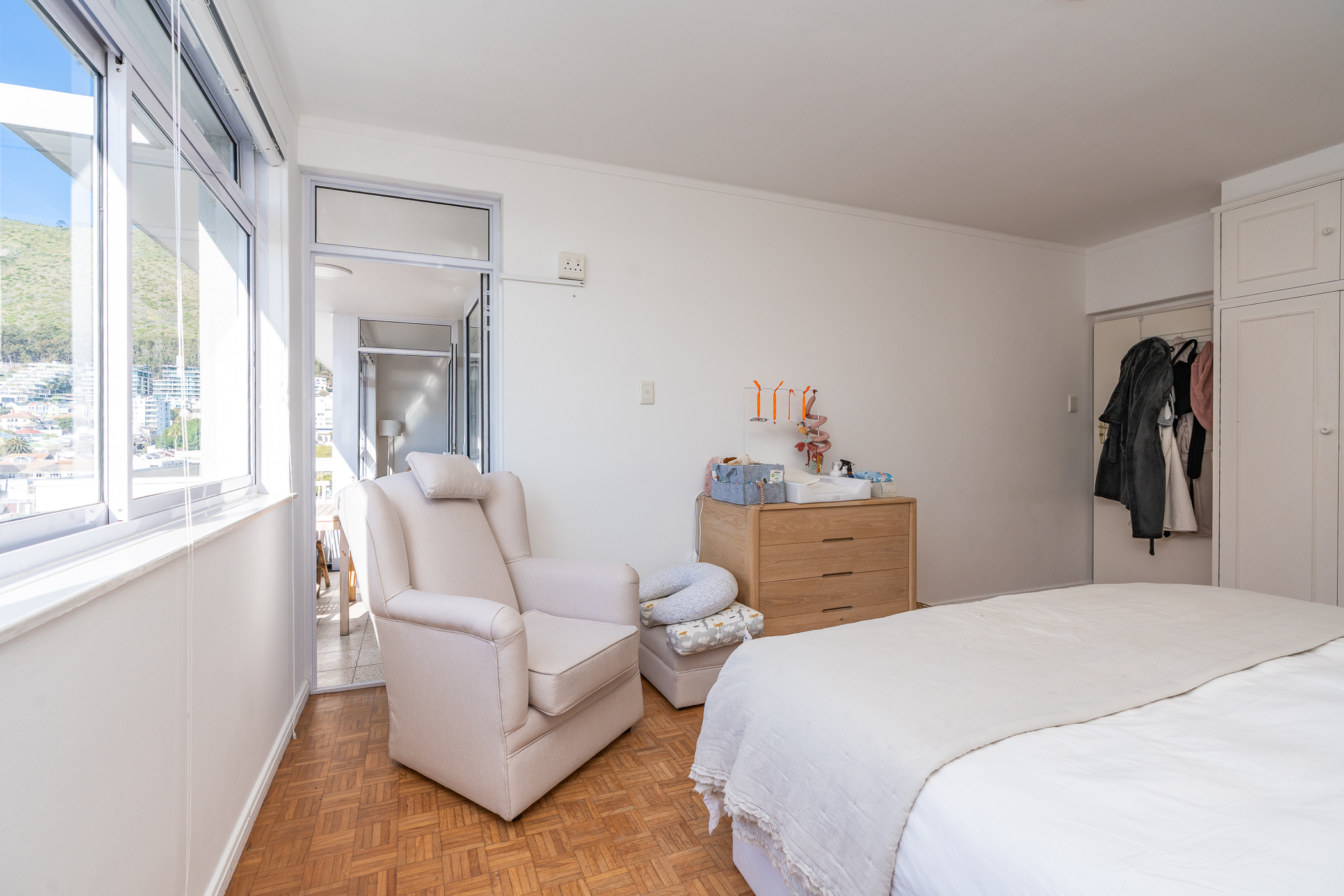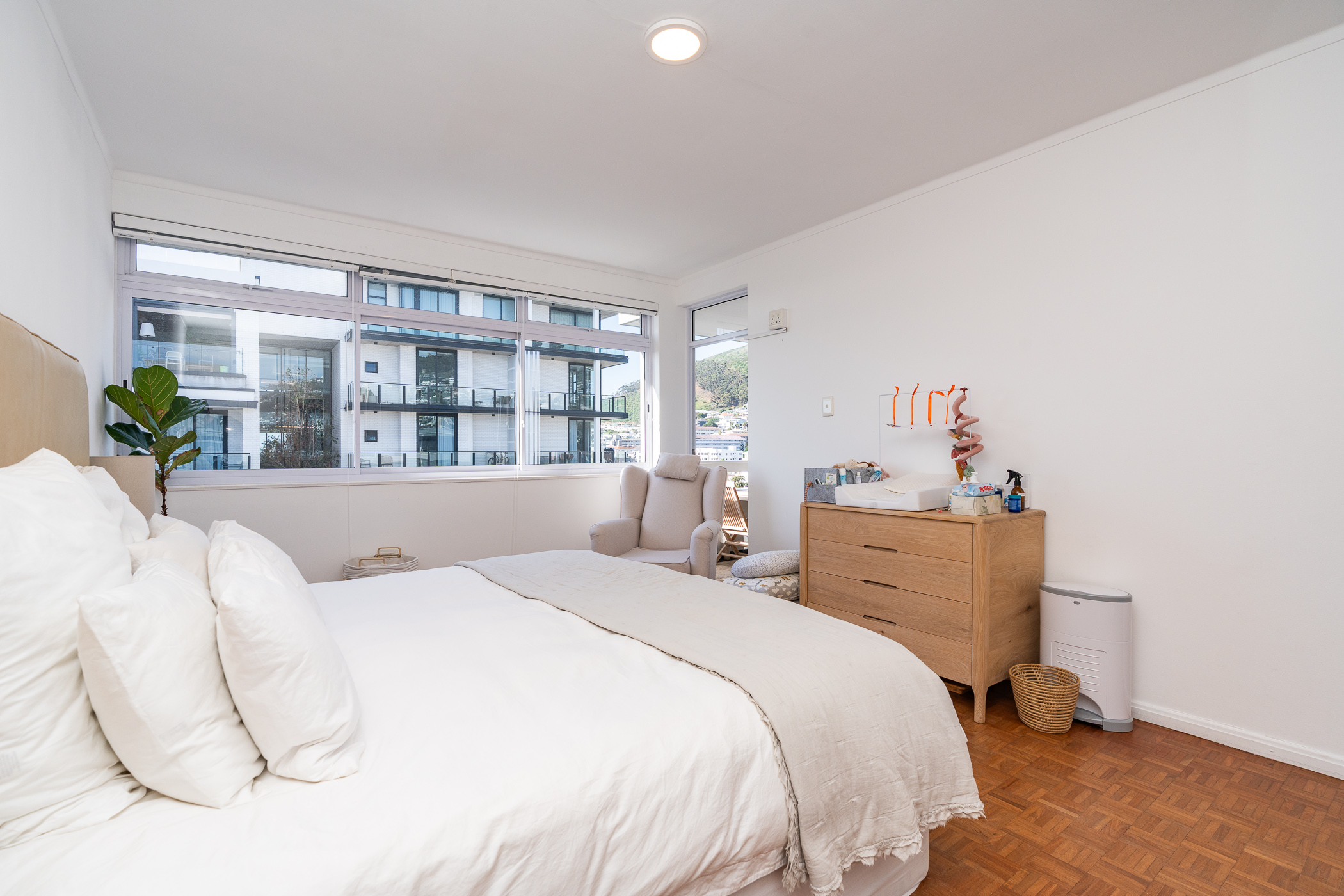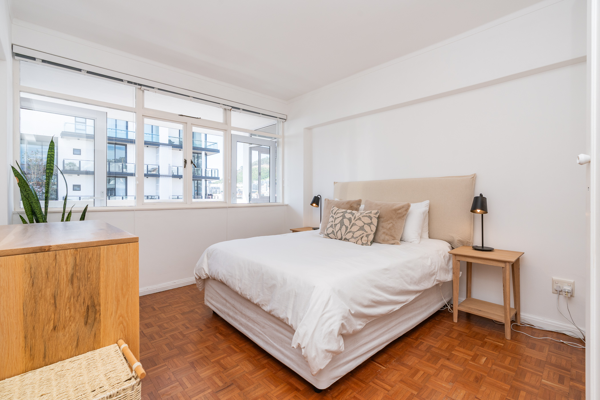 Two of the bedrooms are situated on the North side, with the main bedroom enjoying direct access onto the undercover balcony. Bedroom three is situated on the passage side offering private access for guests. The present bathroom includes both a shower and bath, with a separate cloakroom. An incredibly rare find and immense value-add in this area, is that the apartment comes with ONE GARAGE and TWO PARKING BAYS. The building is well-maintained and the finances are healthy. The building is pet-friendly (one pet with trustee consent) but short-term letting is not permitted (min. 6 months). This is a golden opportunity to acquire a large apartment with a gorgeous orientation, in a pocket that has seen extensive development and investment in the past 3 years.