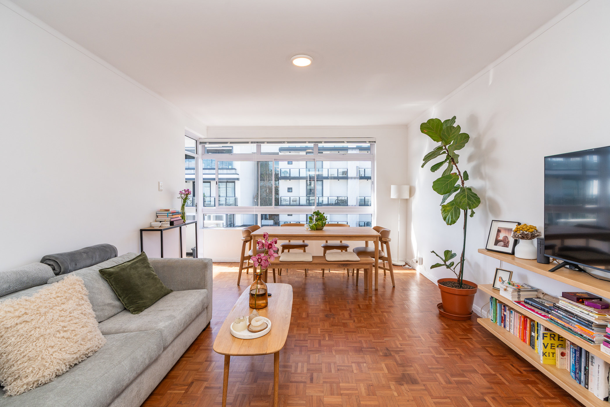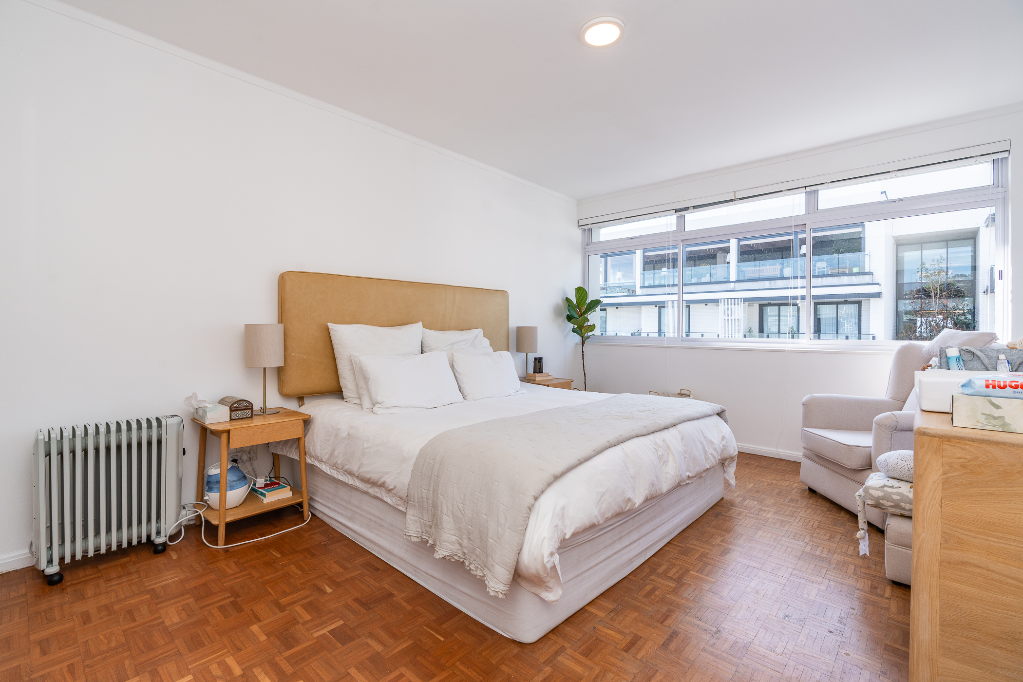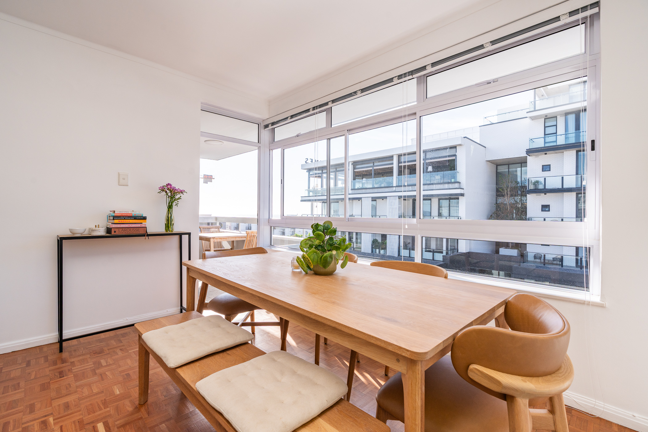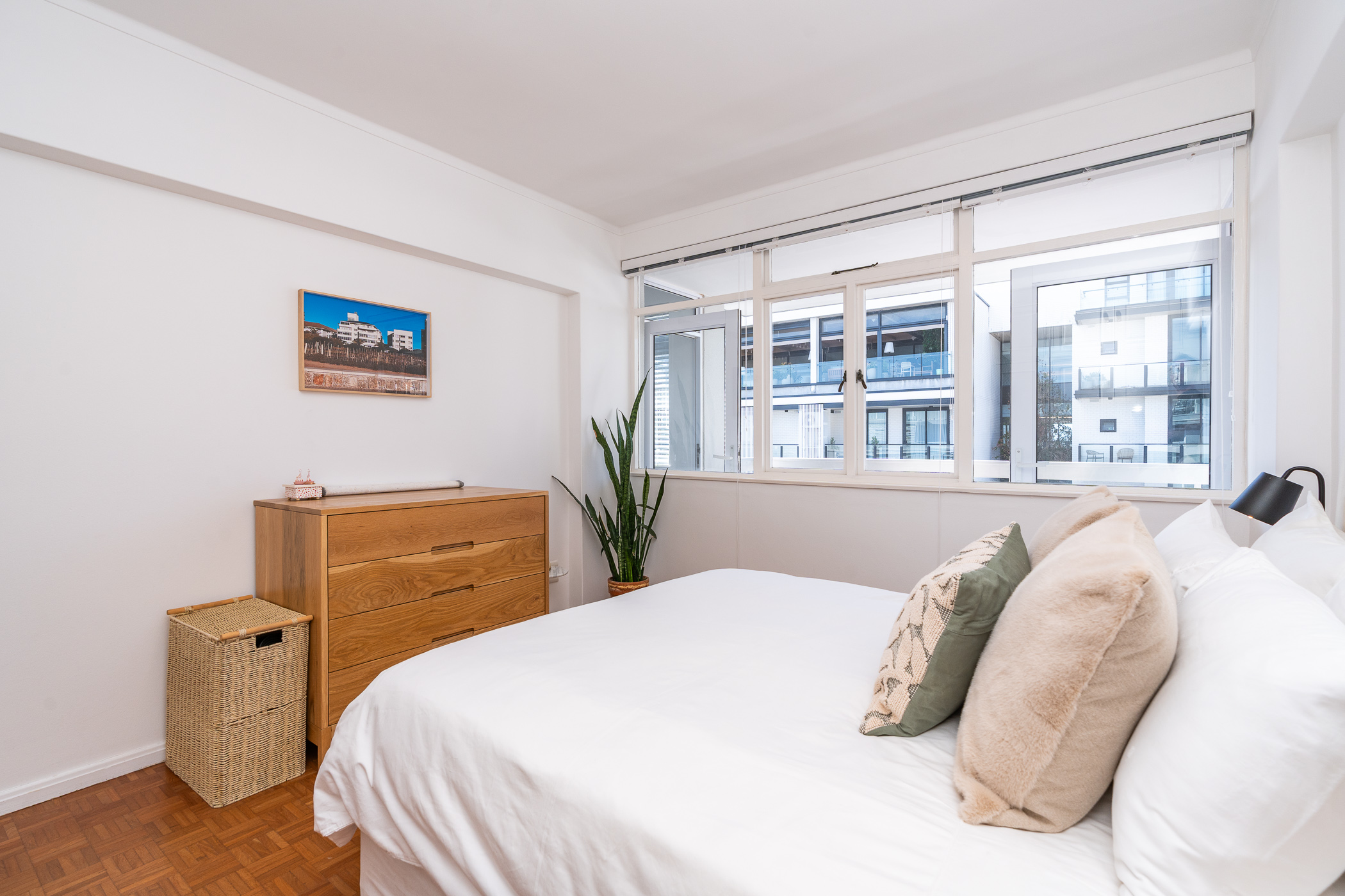 Two of the bedrooms are situated on the North side, with the main bedroom enjoying direct access onto the undercover balcony. Bedroom three is situated on the passage side offering private access for guests. The present bathroom includes both a shower and bath, with a separate cloakroom. An incredibly rare find and immense value-add in this area, is that the apartment comes with ONE GARAGE and TWO PARKING BAYS. The building is well-maintained and the finances are healthy. The building is pet-friendly (one pet with trustee consent) but short-term letting is not permitted (min. 6 months). This is a golden opportunity to acquire a large apartment with a gorgeous orientation, in a pocket that has seen extensive development and investment in the past 3 years.