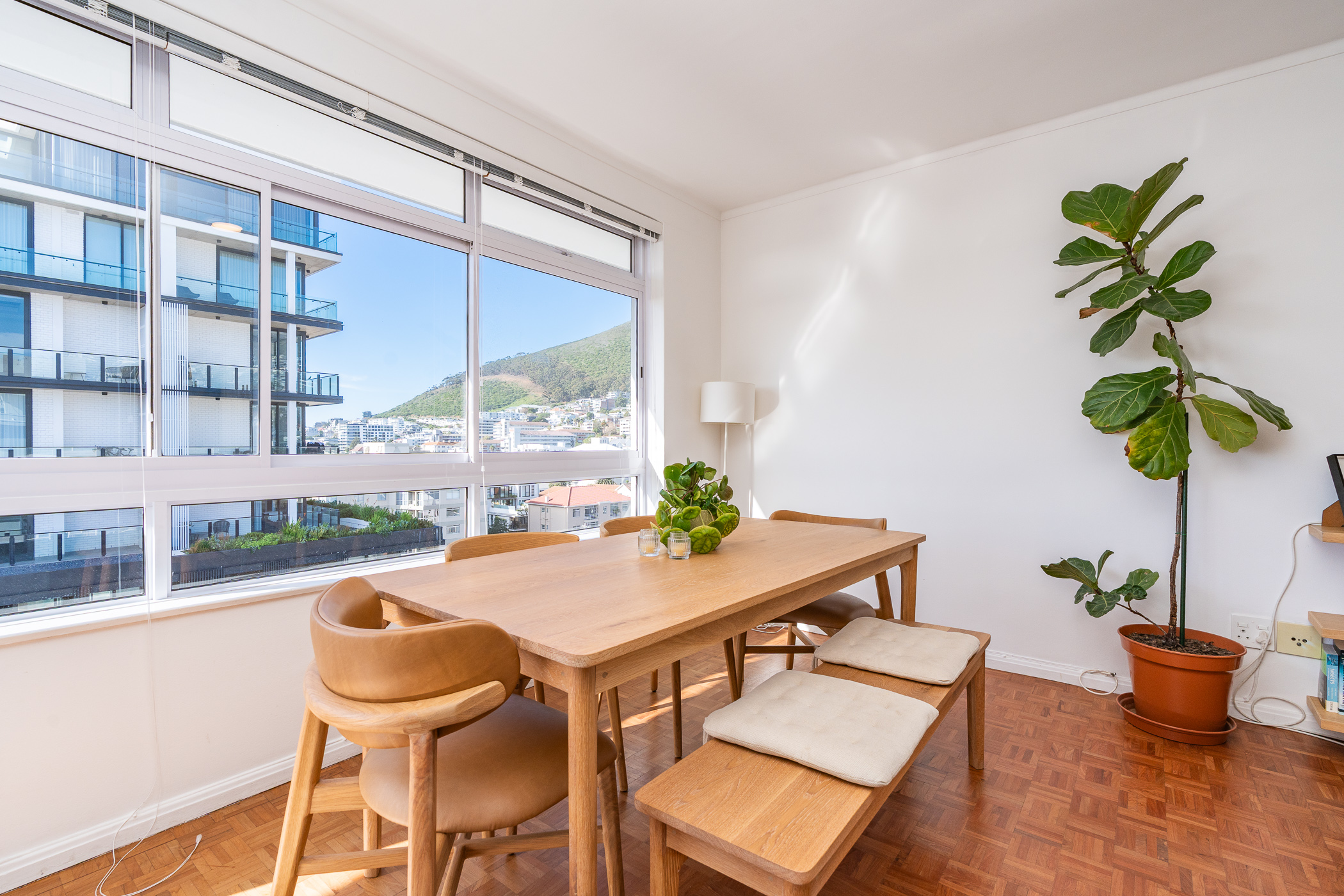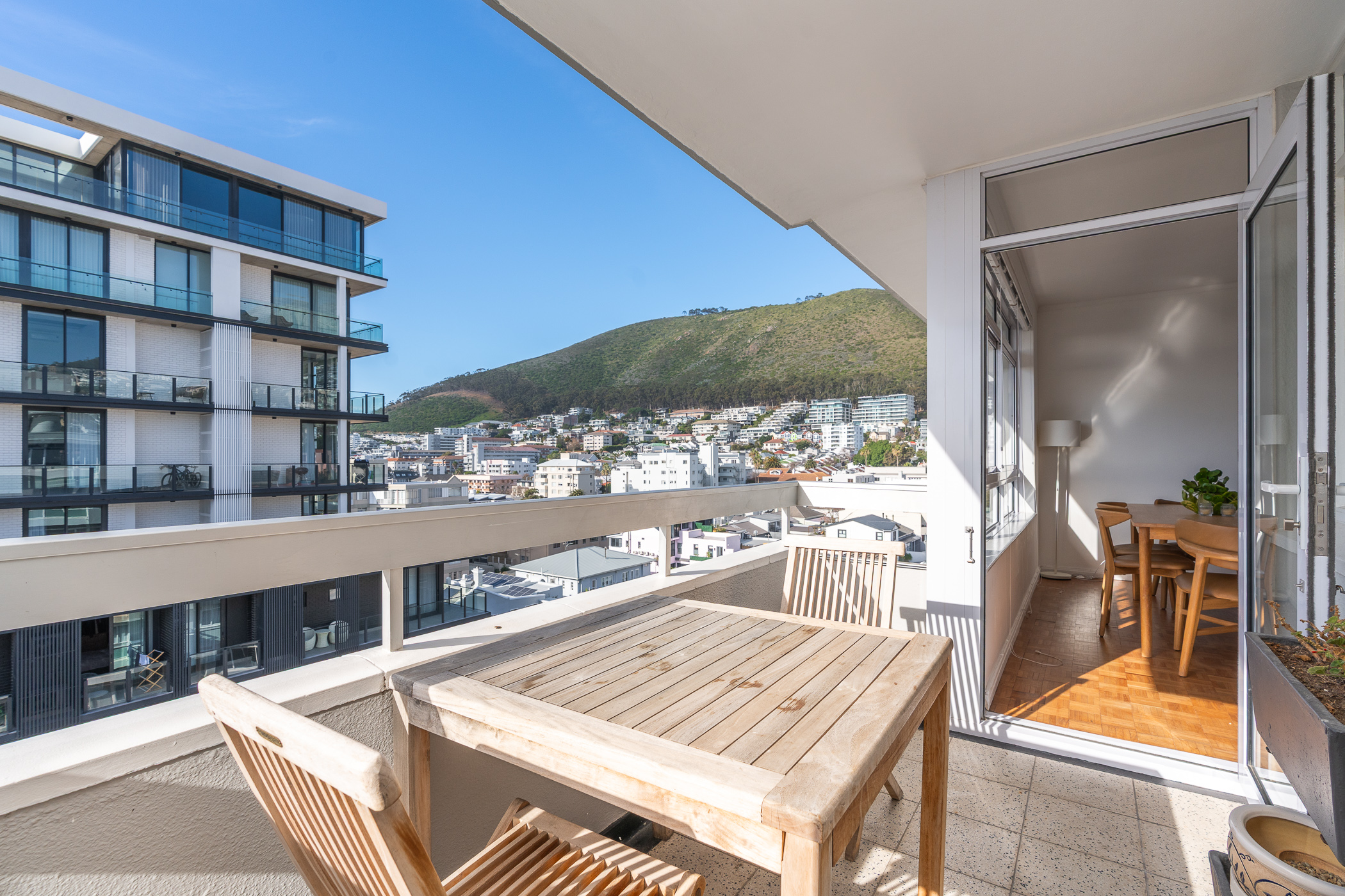 Illuminate Real Estate is proud to present this wonderfully bright, North-facing, 104 sqm, penthouse apartment opposite Station House. Located on the 8th floor with sea views to the West, and views of Signal Hill to the East. Meticulously maintained, the apartment retains much of its original layout and finishes (including parquet floors) for those seeking an apartment with a traditional feel, but the space lends itself to modernization should that be your desire. Plans have been prepared to convert the apartment into a 2 bedroom, 2 bathroom property with an open plan living room, and can be made available post physical viewing.