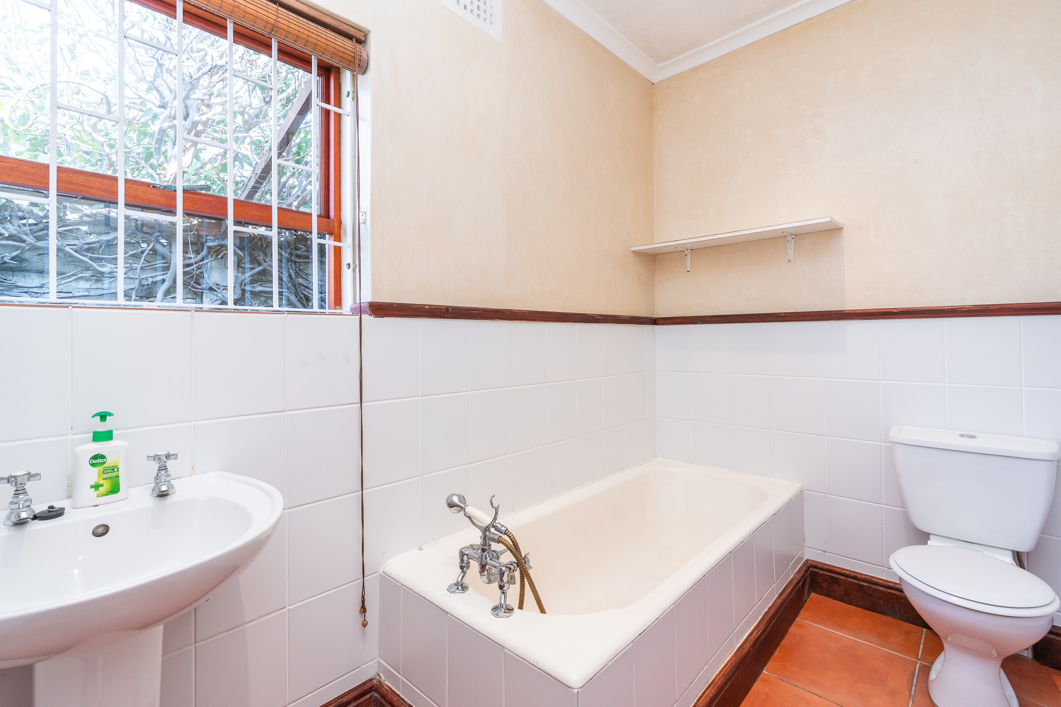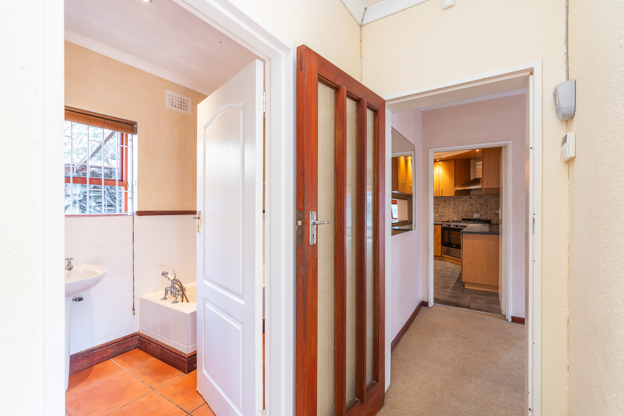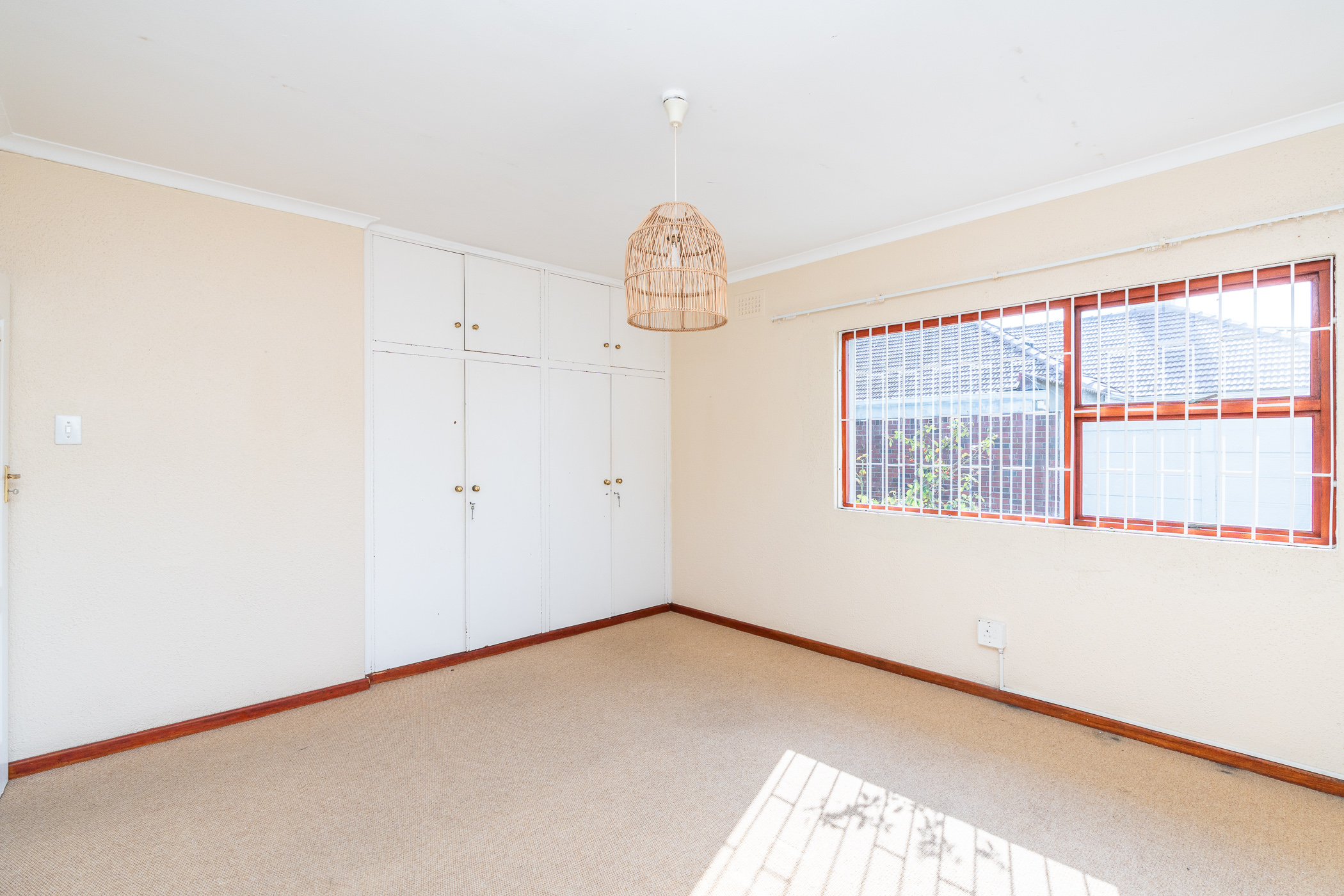 This home offers three generously sized bedrooms, each with built-in cupboards. The family bathroom includes a bath, basin, and toilet, while the second bathroom features a shower and toilet for added convenience.