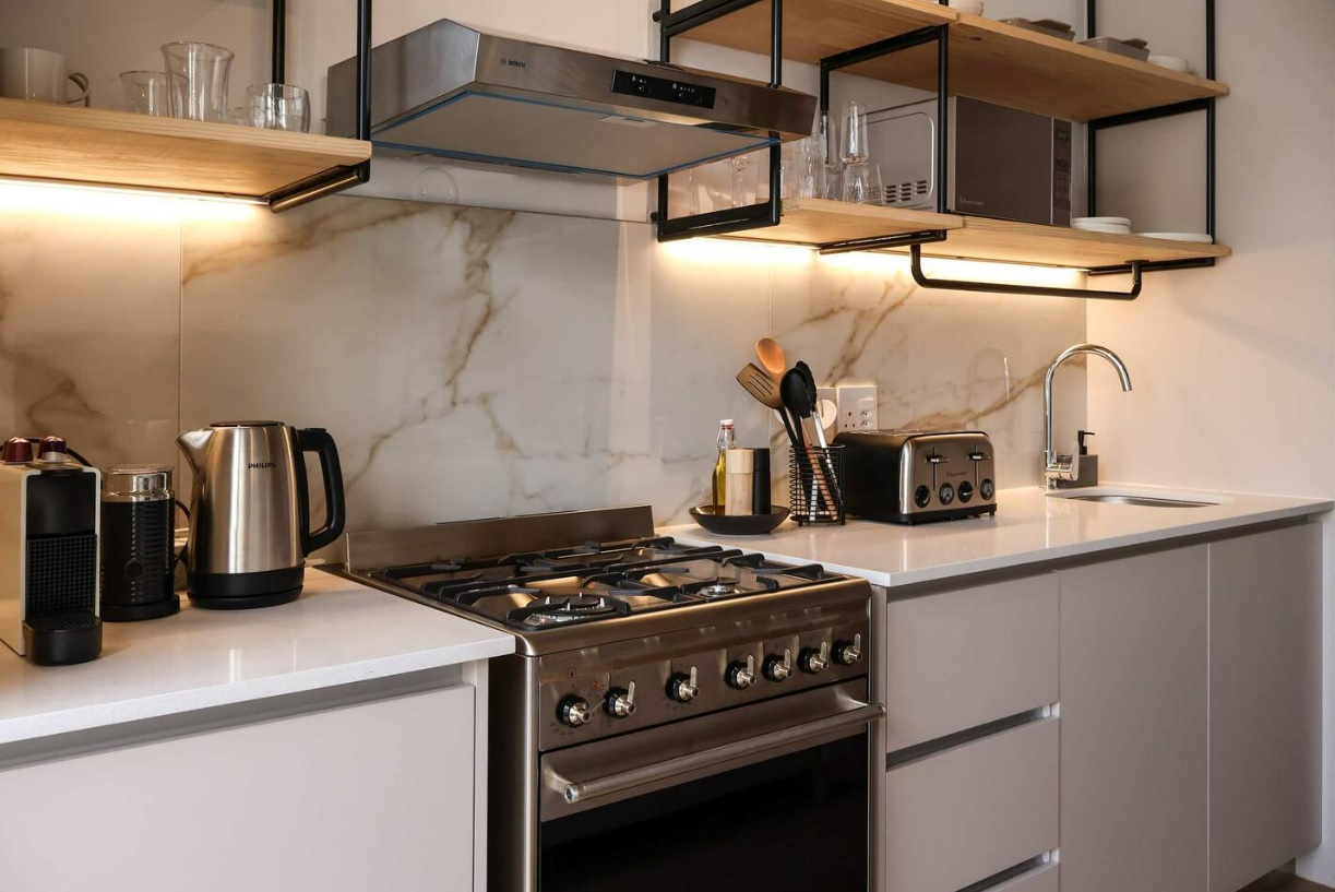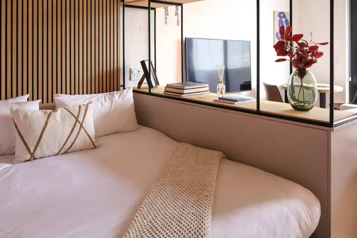 The apartment comes fully furnished as shown in the photographs, with quality decor and appliances, SMEG gas/electric stove, and aircon. The 30sqm studio space leads onto an outdoor terrace with seating, and the apartment is on the same floor as a larger wooden sundeck with outdoor seating, umbrellas, and cute work nooks. Operating as an aparthotel means that you can either occupy the apartment permanently, as a holiday pad when you're in town, or include it in the hotel pool and simply block the days that you wish to use it.