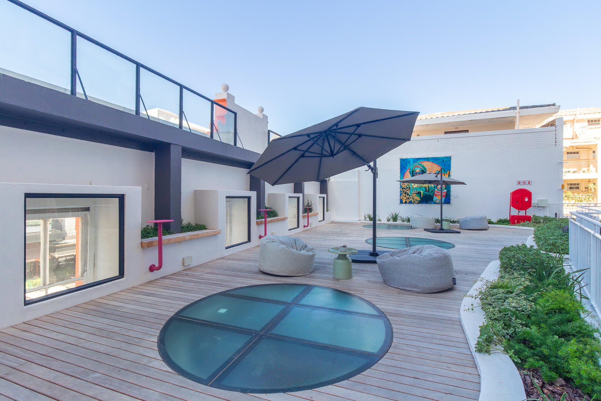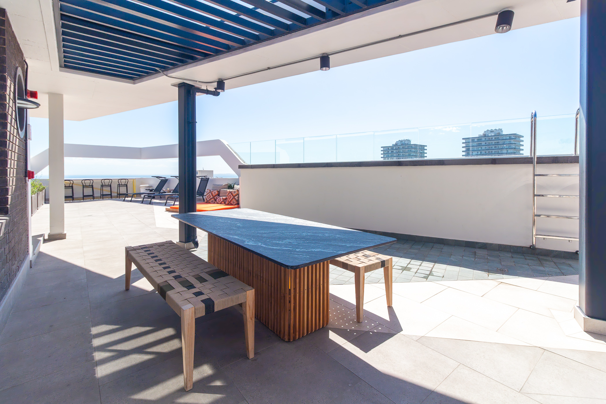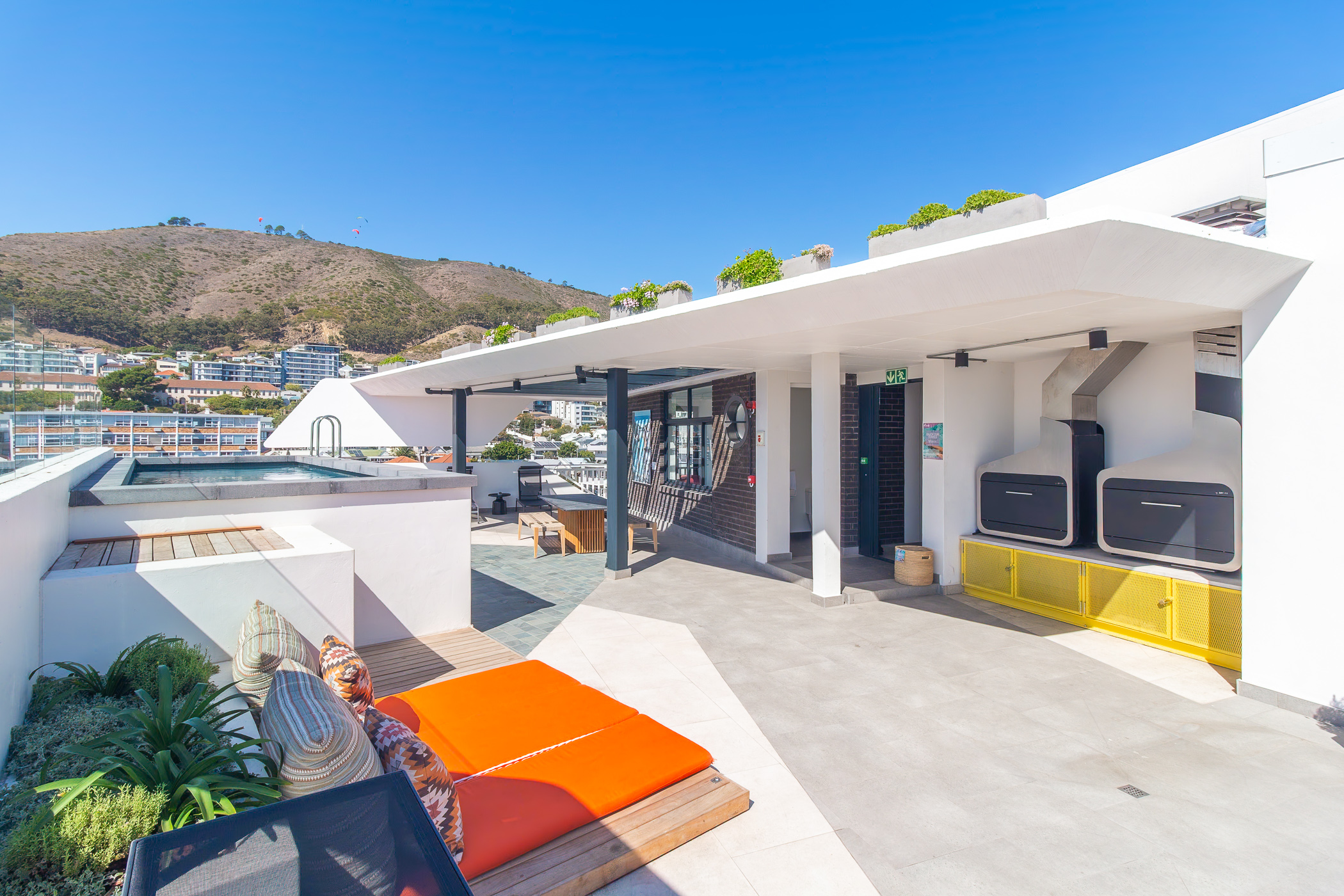 EIGHTY2 ON MAIN is a super fun, incredibly well located, aparthotel completed in 2024. Situated a mere 240m from the promenade and Rocklands Beach, in an area rich with gorgeous cafes, restaurants and convenience stores. The building has a colourful vibrancy to it which brings a smile to every resident. The communal rooftop pool, sundeck, and braai facilities are well-utilized and superbly maintained.