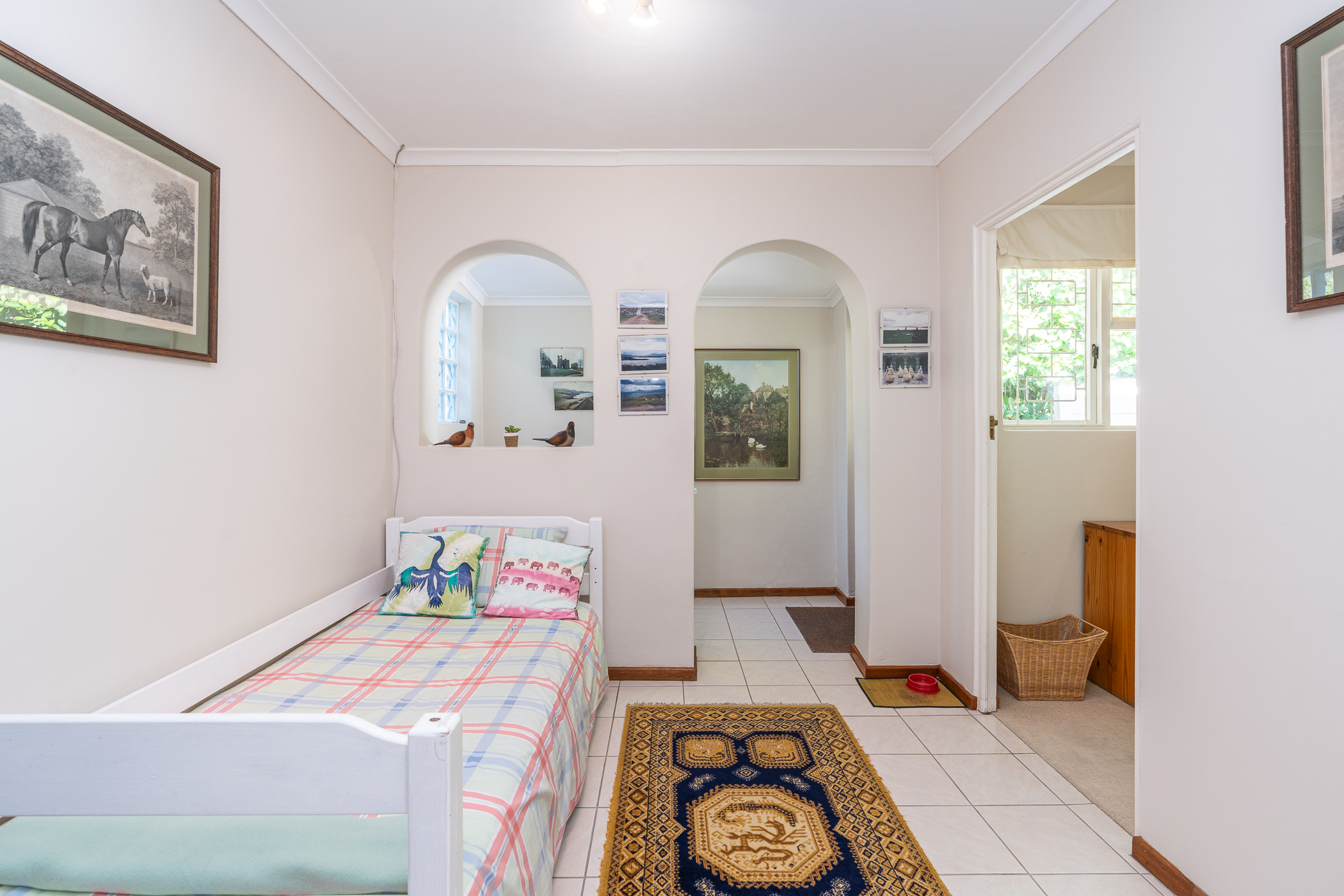 Excellent Security with Alarm System, Beams, burglar bars and Trellidors.