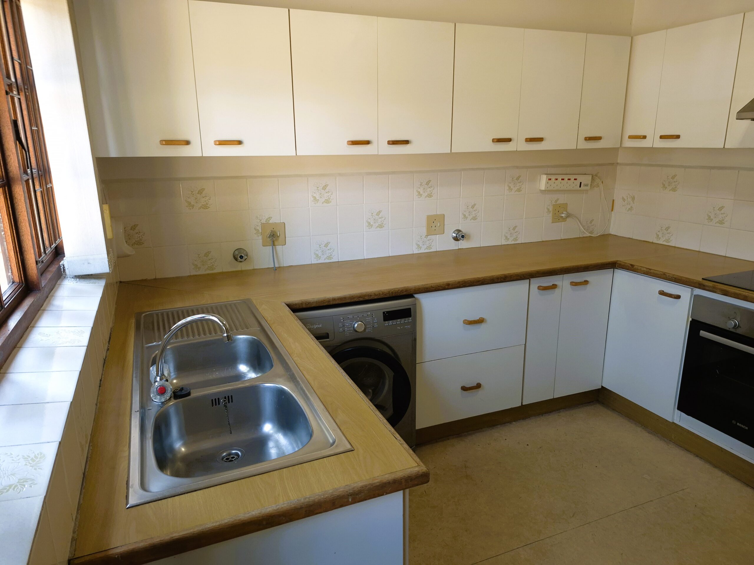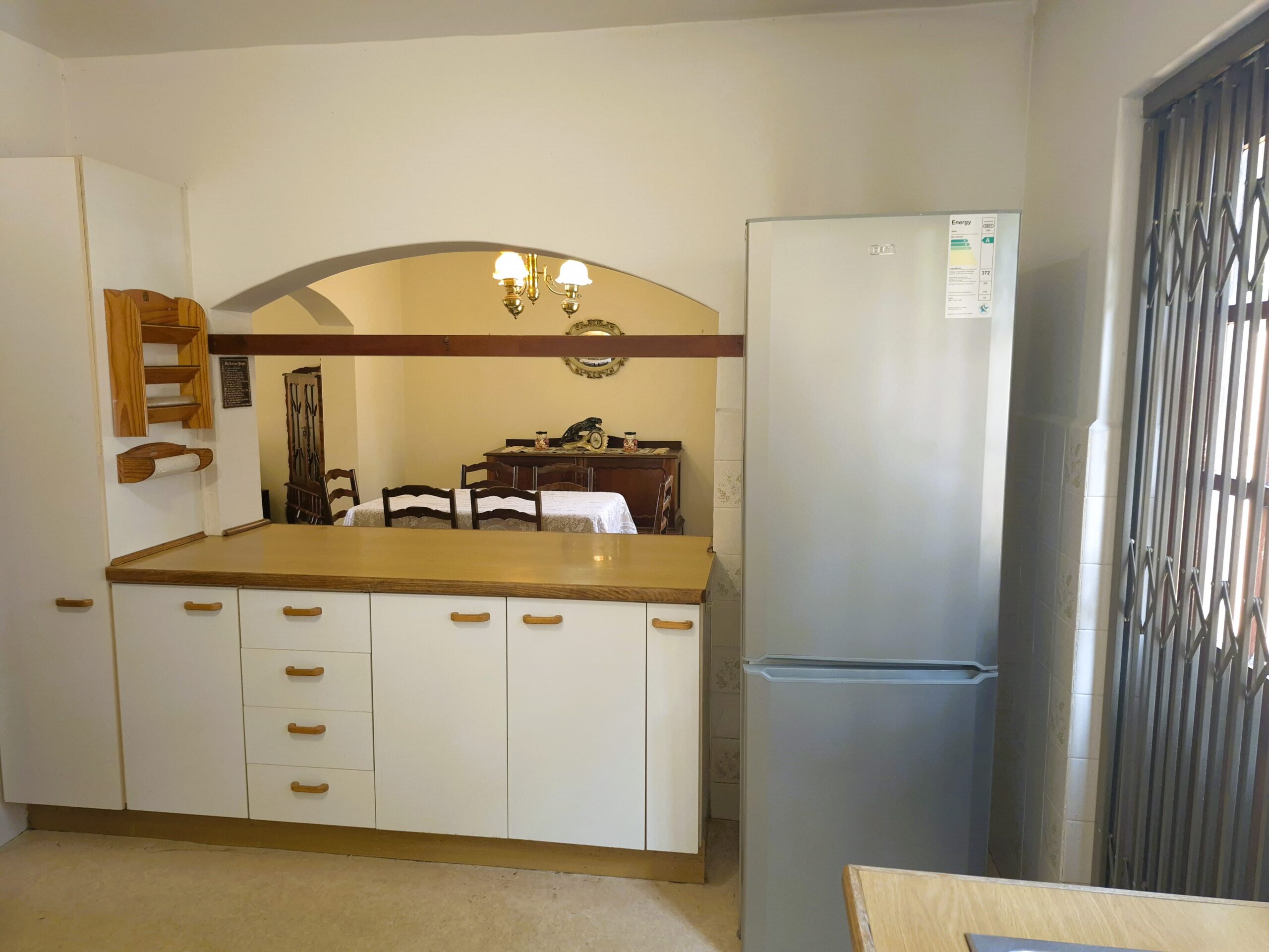 The modular Kitchen is well-designed with loads of storage, built-in glass hob, undercounter oven, extractor, arched serving hatch to Dining room and is plumbed for washing machine plus there’s a handy storeroom under the stairs. The backyard has plenty of space for the washline and there’s an exterior pedestrian gate.