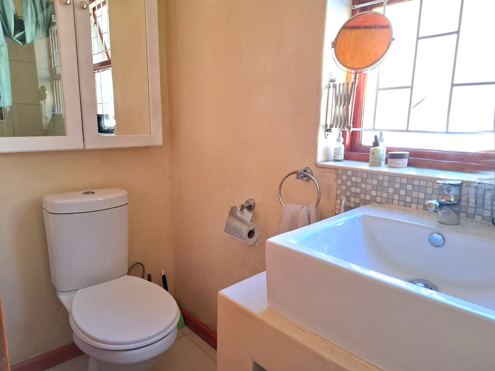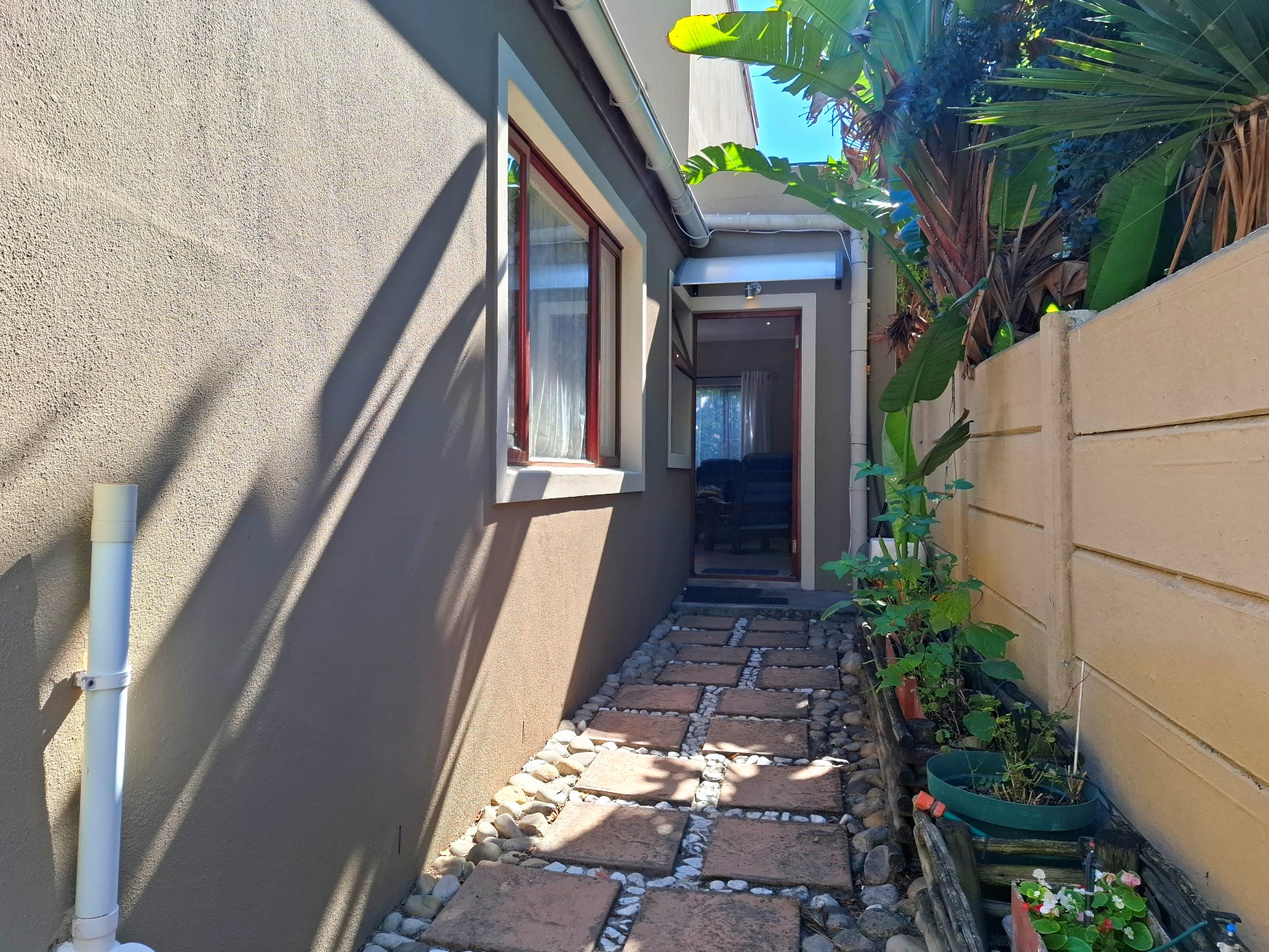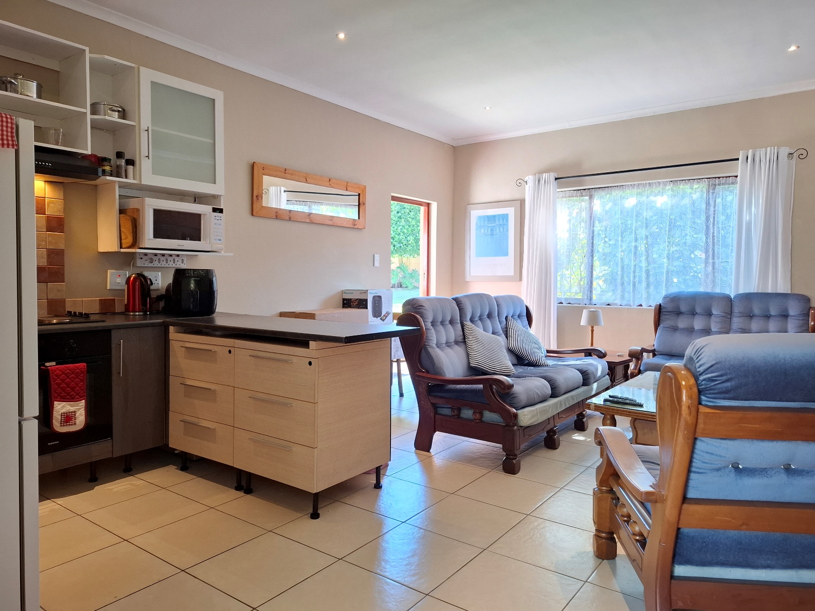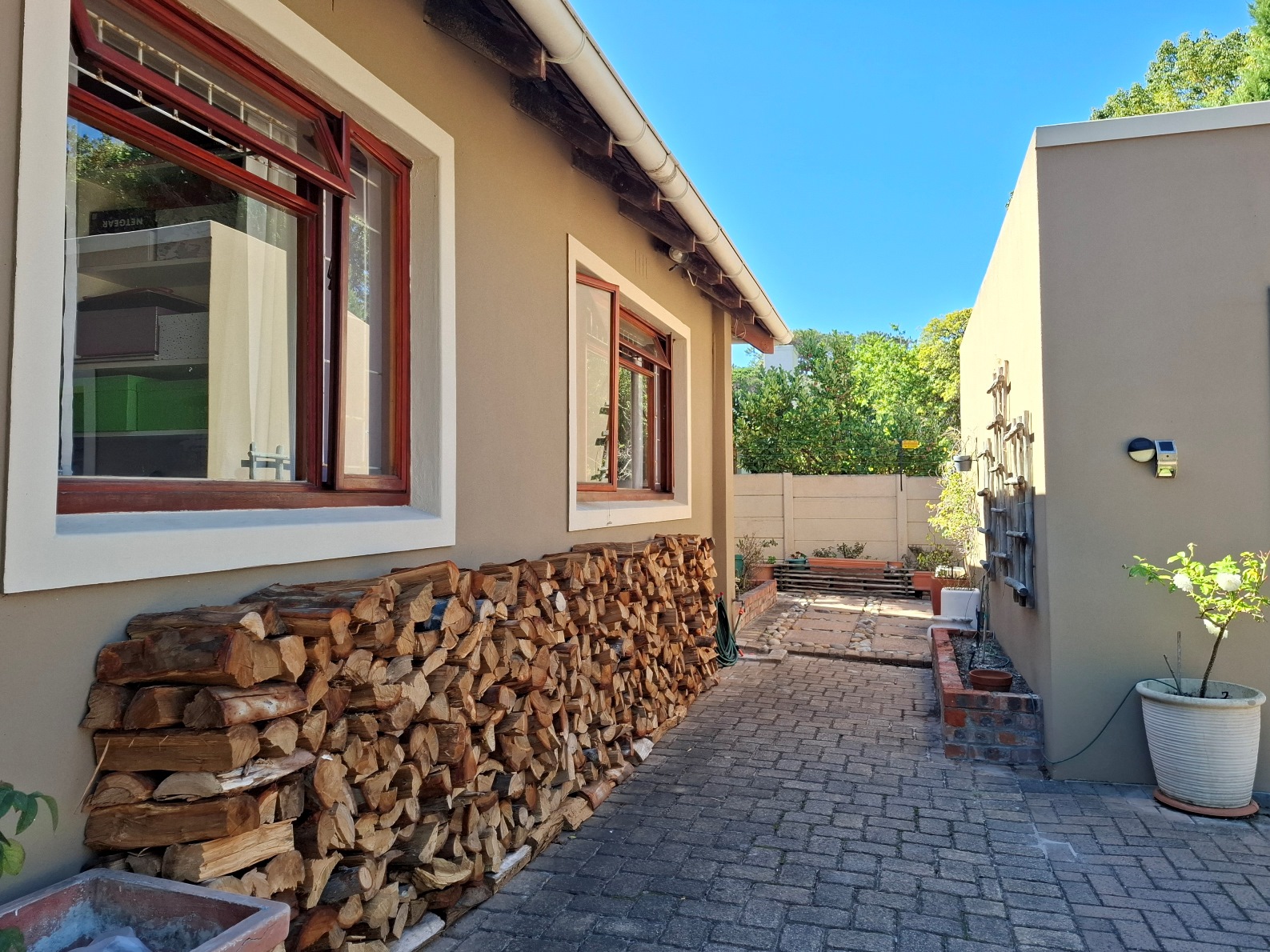 In terms of outside spaces, there are two patios - one suited to host large gatherings (with built-in braai), and a second suited to cosey evenings on the couch with a glass of wine. The main garden is north-facing, has a large swimming pool (heated; safety net), a borehole, irrigation system, two water tanks, and kiddies jungle gym. The cottage is approximately 50sqm with the bedroom separate, an open plan kitchen/lounge with a door to the back garden.