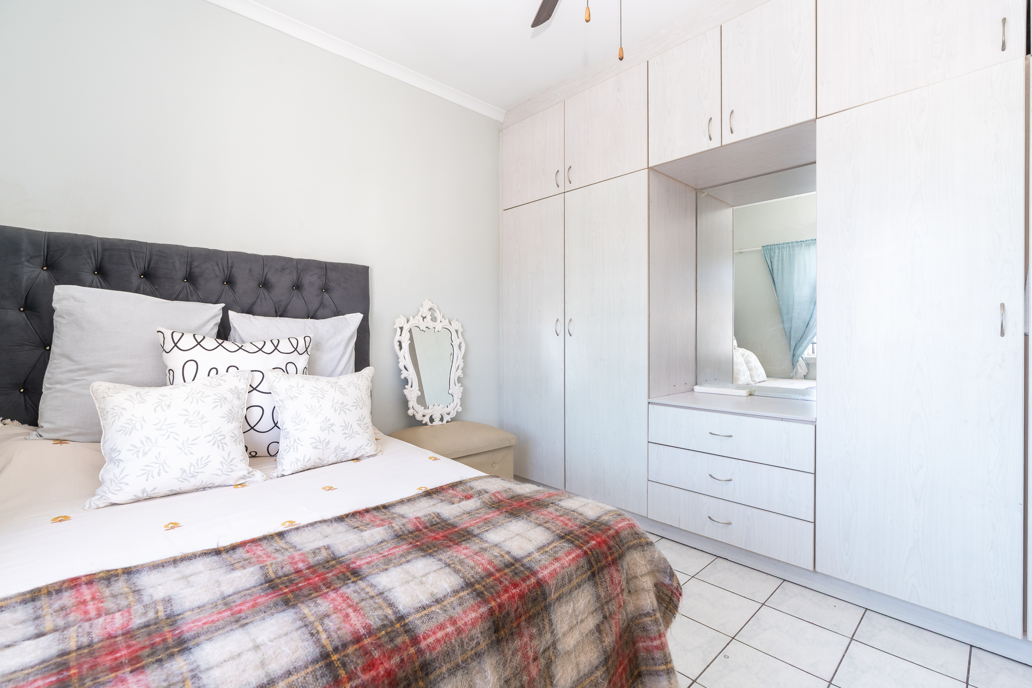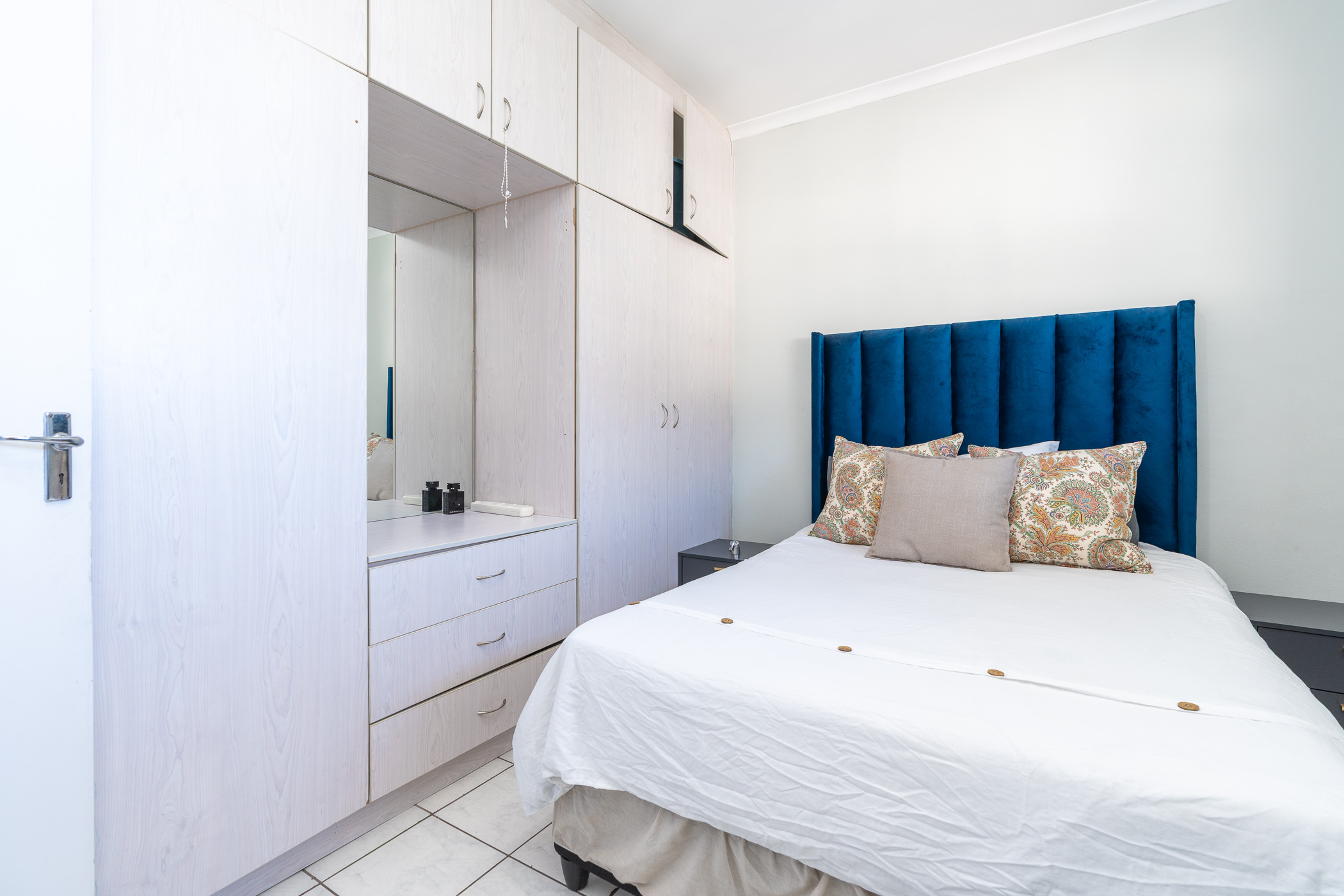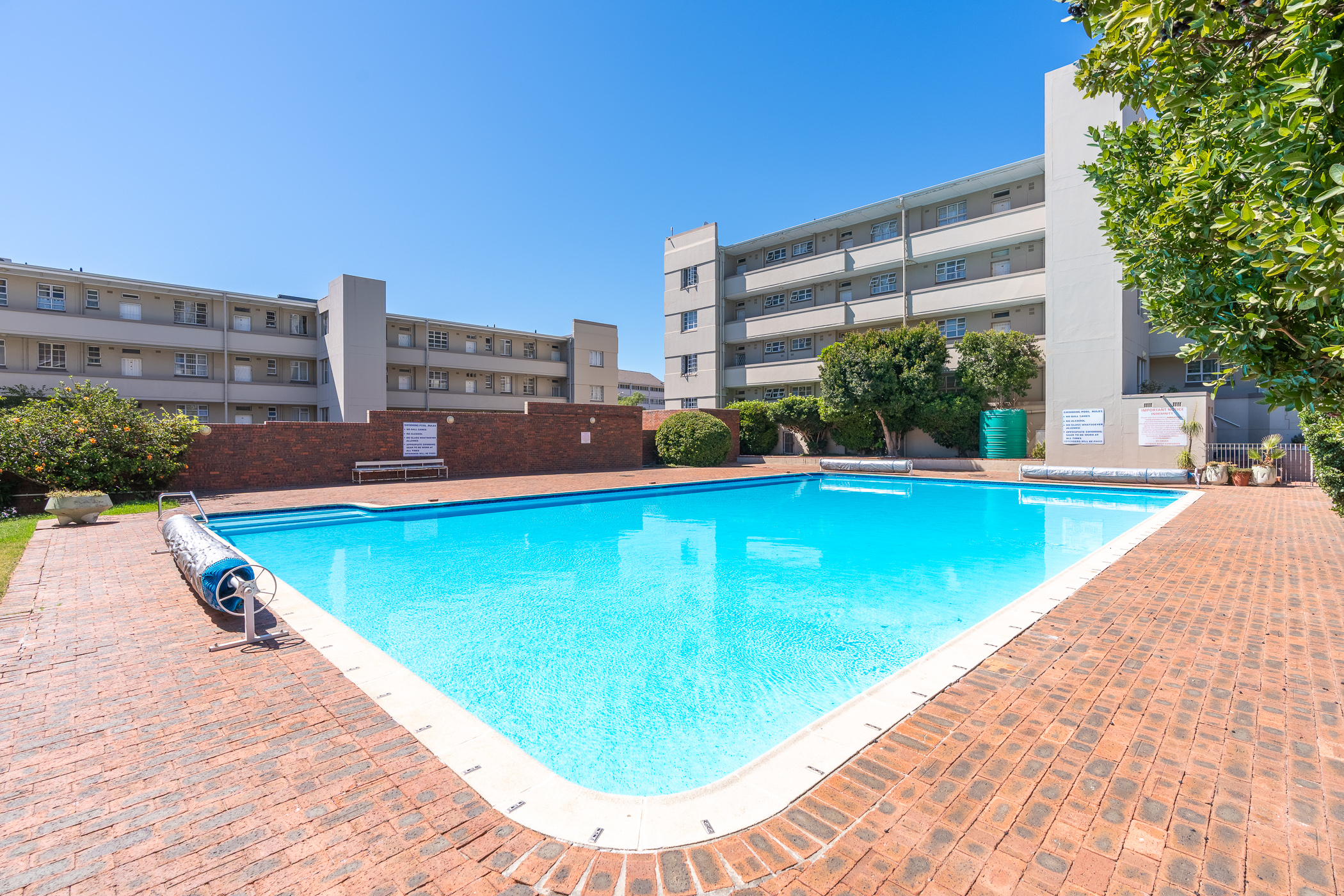This neat North-West facing, 2 bedroom, 1 bathroom apartment is situated on the top floor in the centre of Skyways - offering a peaceful, quiet position within the complex and easy access to the immaculate communal swimming pool, gardens, and braai facilities. Skyways enjoys state-of-the-art 24 hour manned security, and is superbly maintained by onsite ground staff. There is a lift in this block, and this particular apartment is situated at the end of the passage meaning that there is no passing foot traffic.